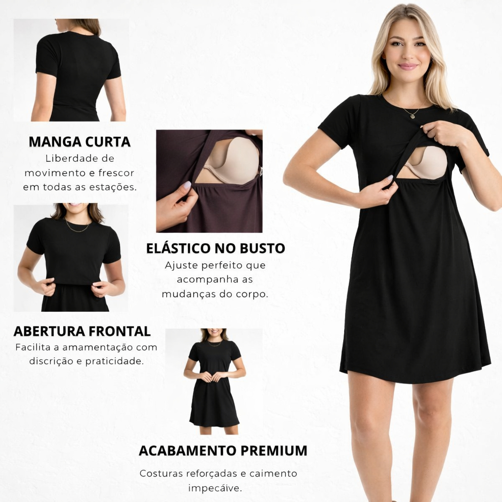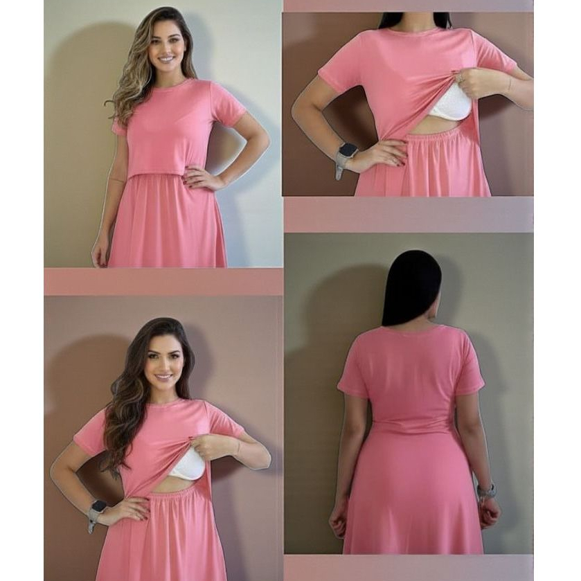 Vestido Casual Gestante Amamentação Maternidade Grávida Amamentar Viscolycra Premium Manga Curta