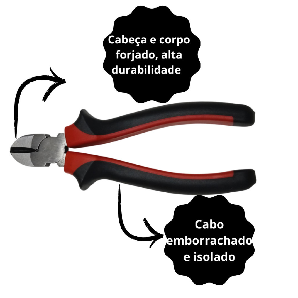 Alicate 6” Corte Diagonal Para Fios e Cabos Aço Carbono Cabo emborrachado
