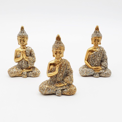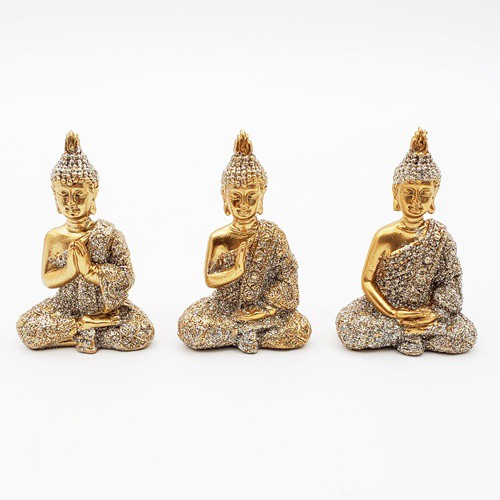 Trio Mini Budas Hindu Sabedoria Decorativo De Resina