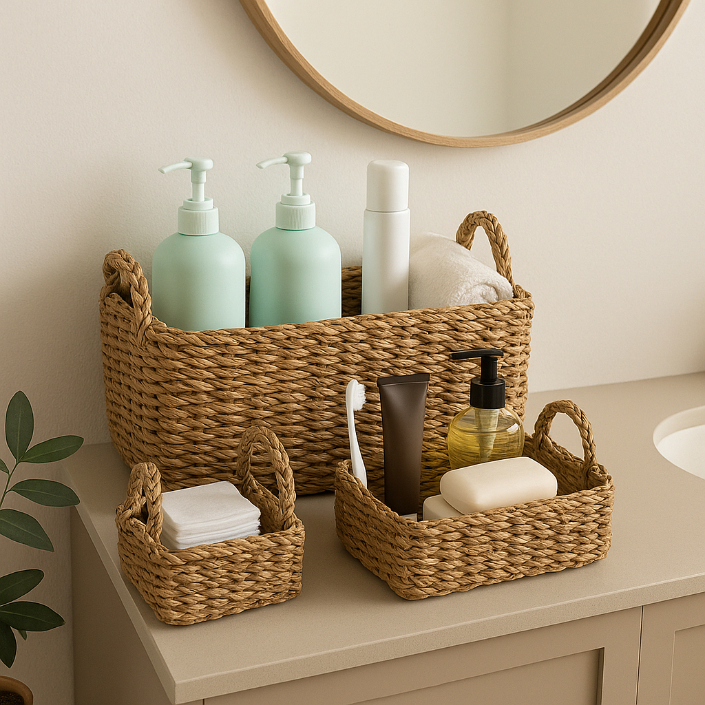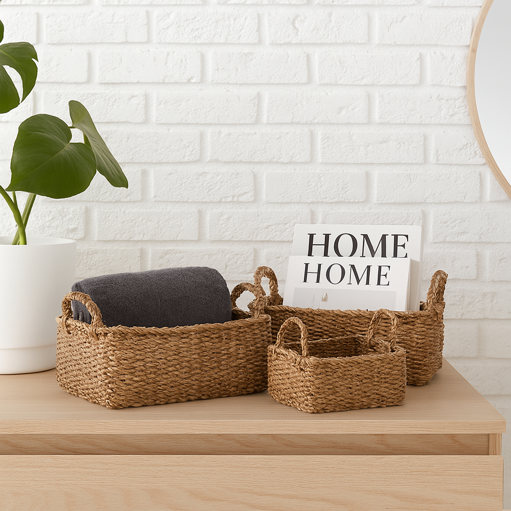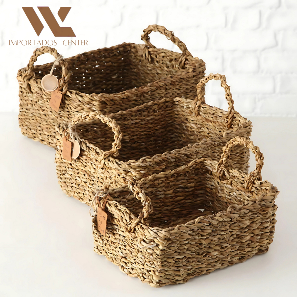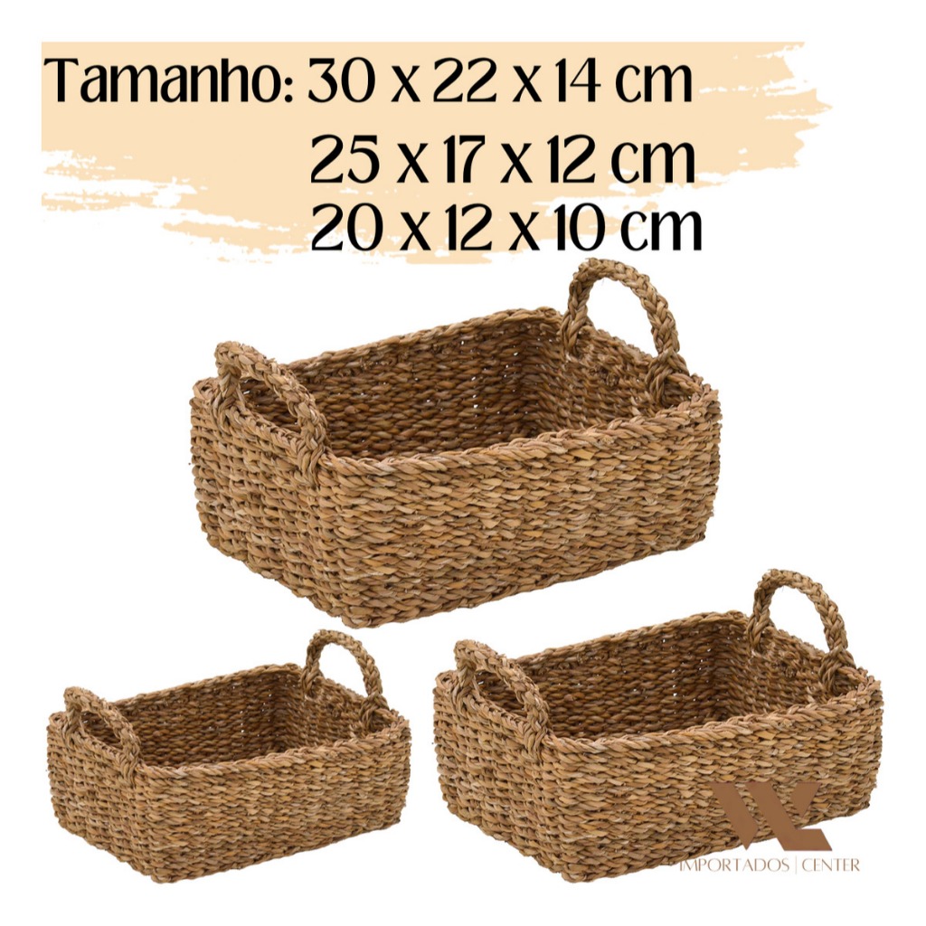 3 Cestas Rusticas Natural Organizadora Decorativa Banheiro Quarto Sala Boho