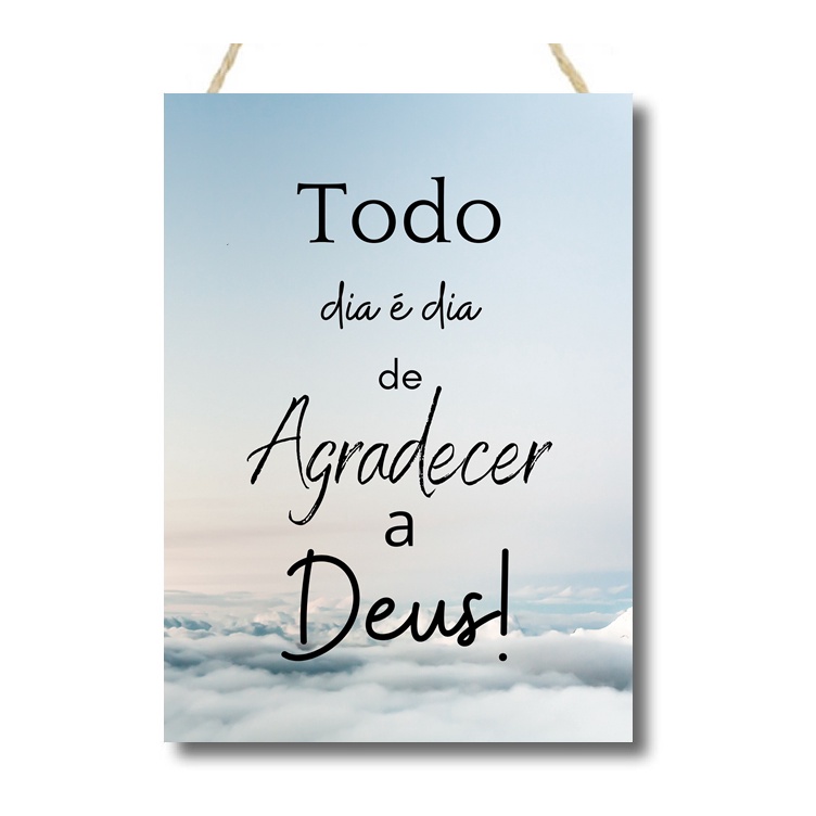 Placa decorativa com corda sisal e frase Todo dia é dia de agradecer a Deus cod 064