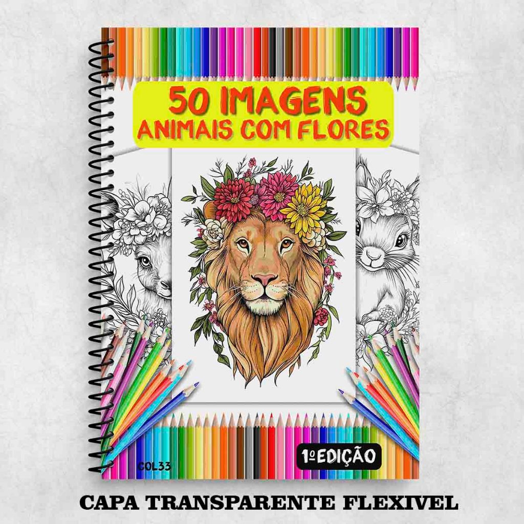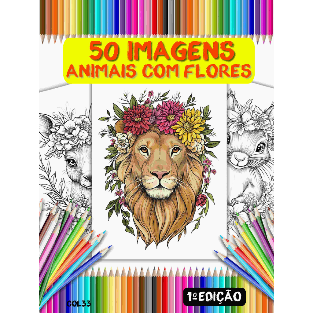 Livro de Colorir Adulto Antiestresse Animais com Flores | Arteterapia Relaxamento | Atividade Criativa Bem-Estar | COL33