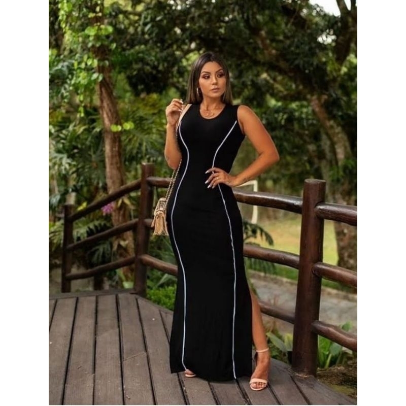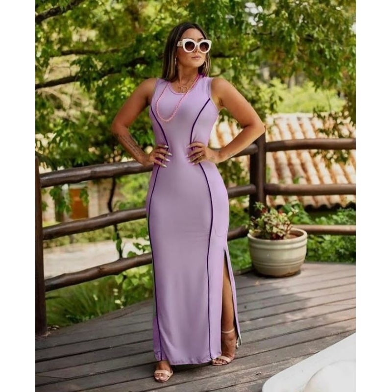Vestido Longo Regata com Viés Moda Evangélica Feminina