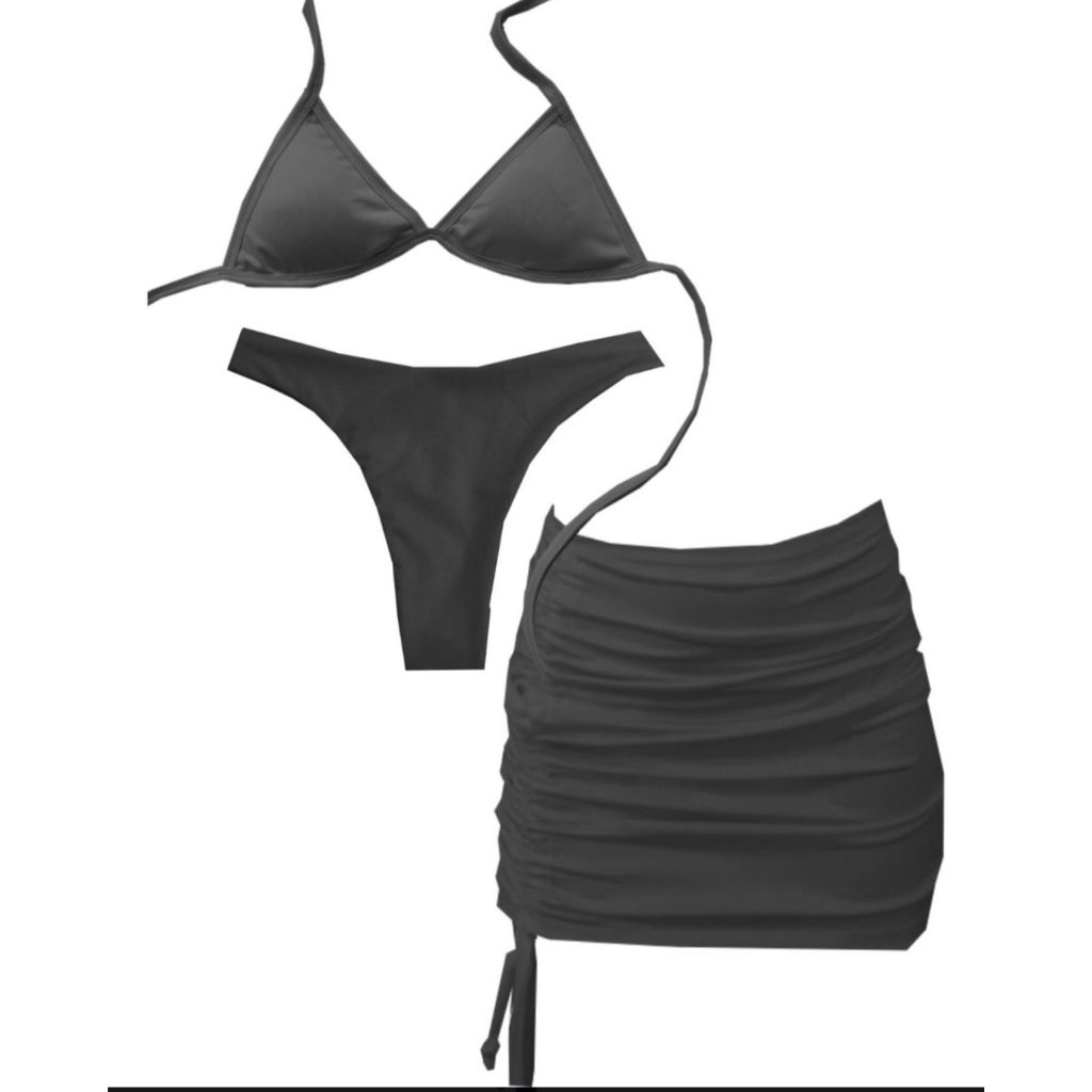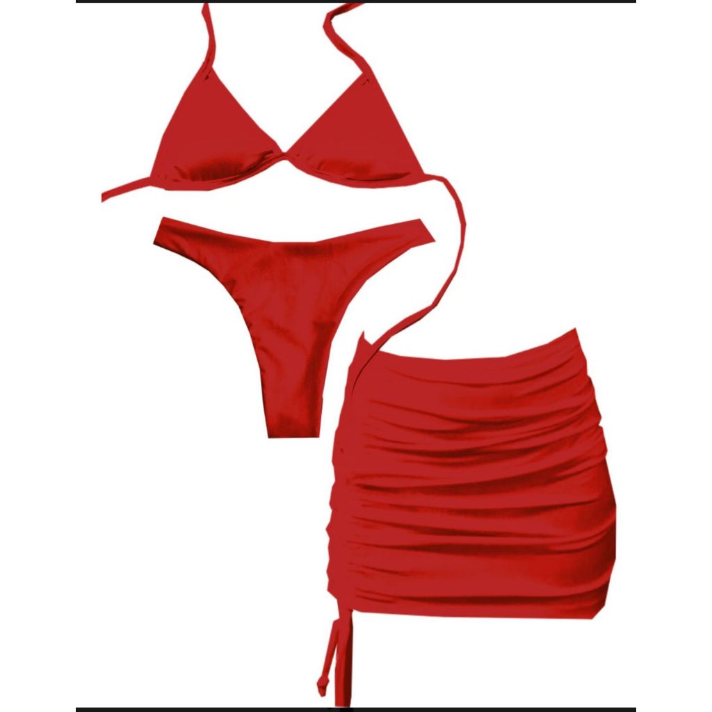 Kit 3 Peças Saída De Praia Saia Franzida Puxador Lateral Calcinha Asa E top fixo com bojo