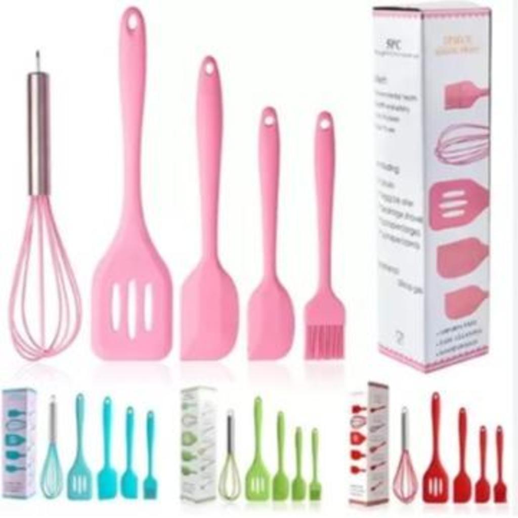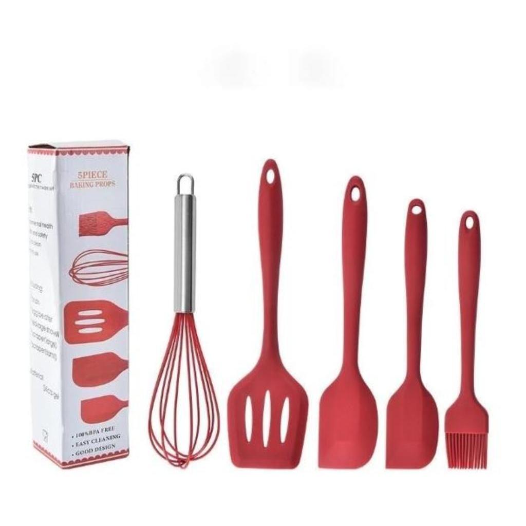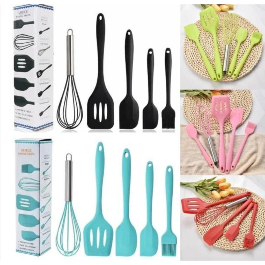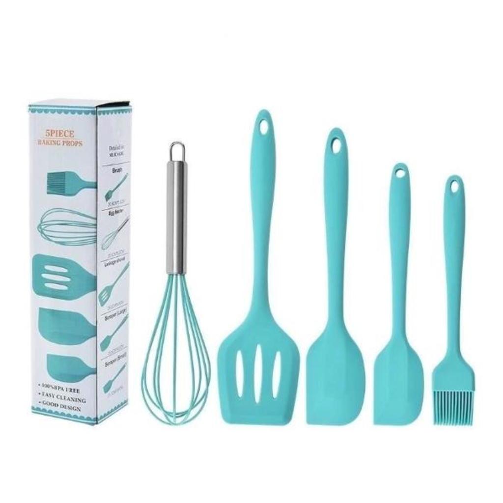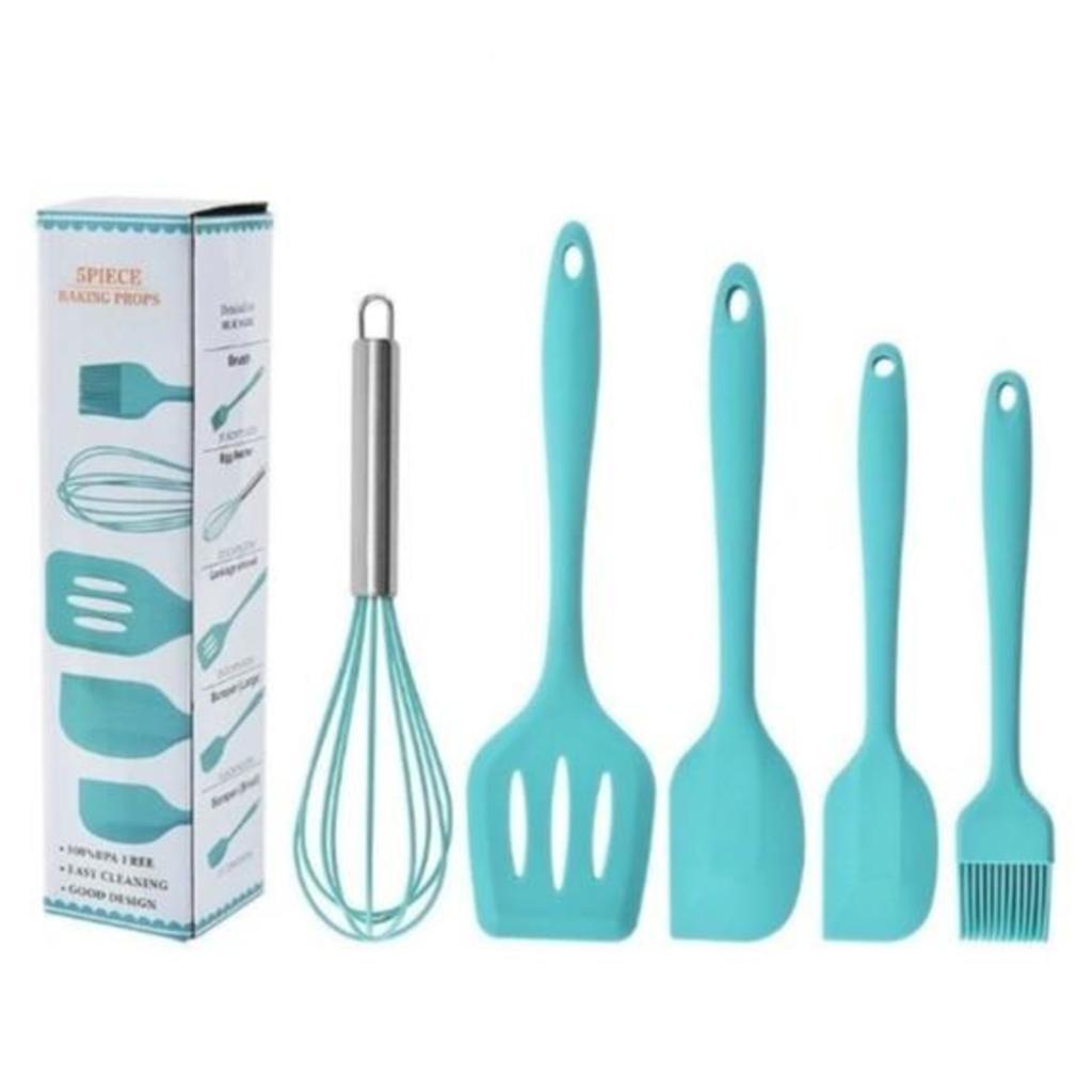 Kit 5 Peças Utensílios de Cozinha Silicone Colher Espátula Fue Espátula Pequena Pincel