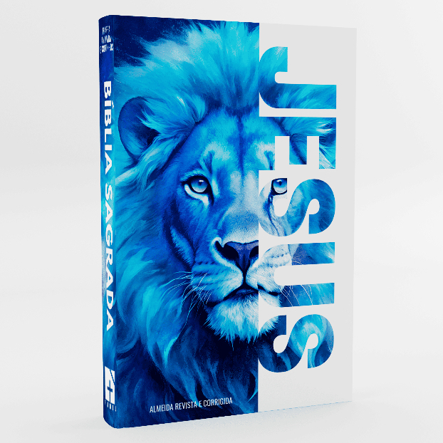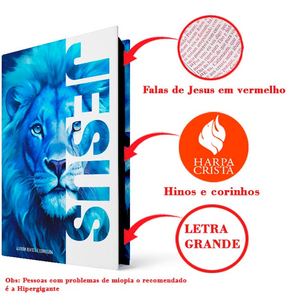 Bíblia Letra Grande Capa Dura Harpa E Corinhos Leão Azul Jesus Fitilho Moderna 033