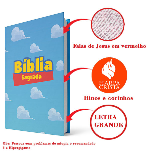 Bíblia Letra Grande Capa Dura Harpa E Corinhos Coleção Inspirada Imaginação Brinquedos Fitilho 077