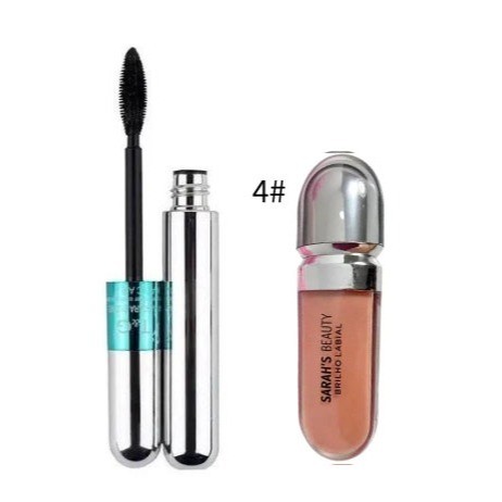 KIT Máscara para cílios a prova d'água RÍMEL 4D T&G Tango cor preto + Brilho Labial - Sarah's Beauty