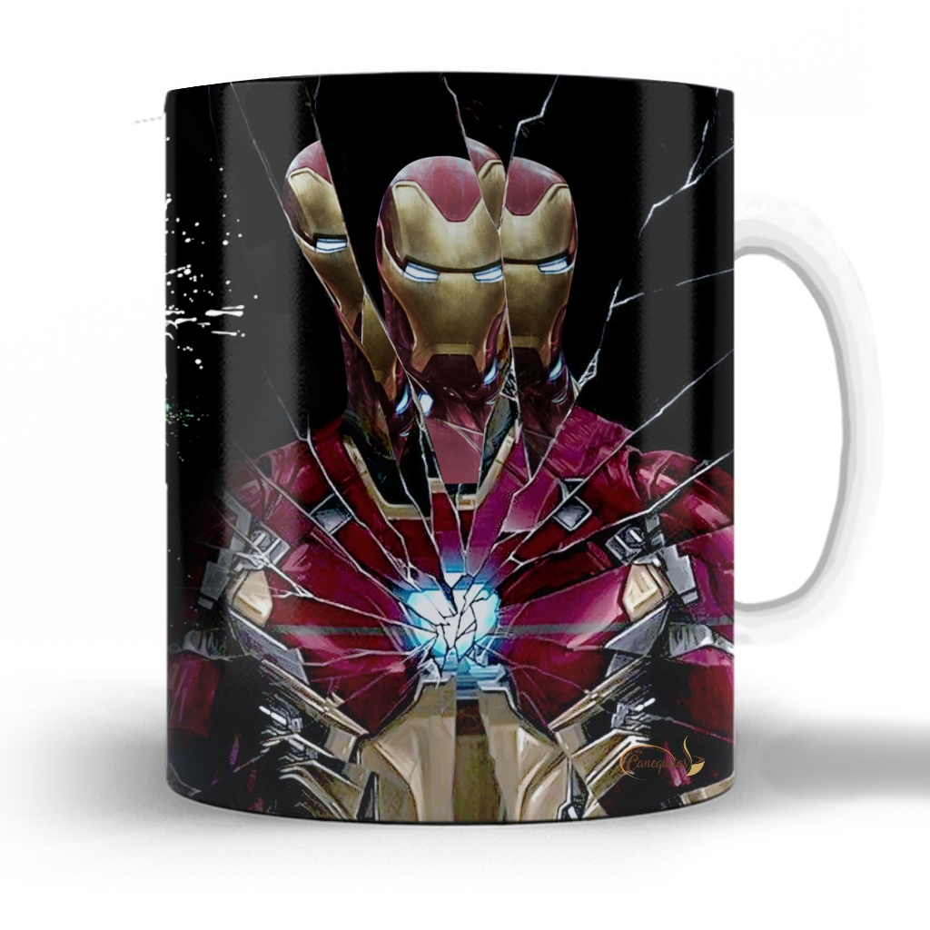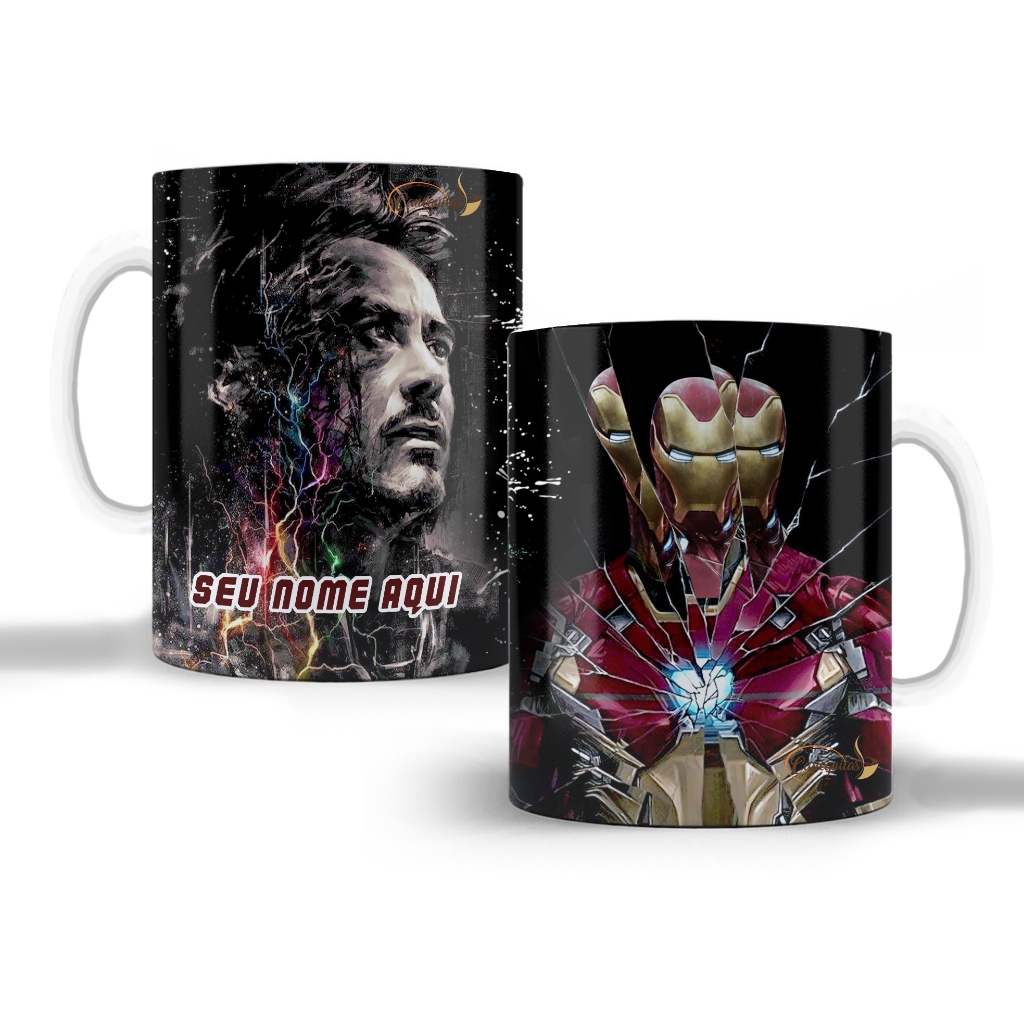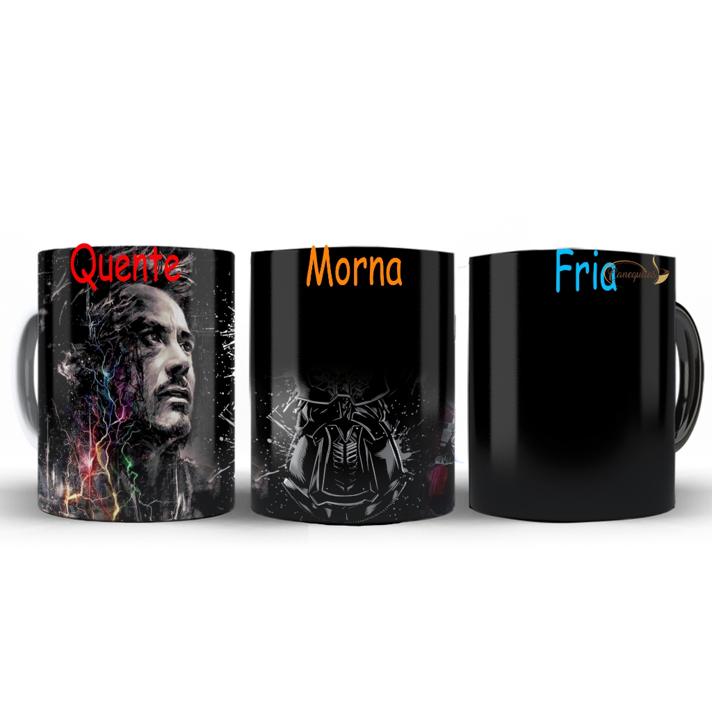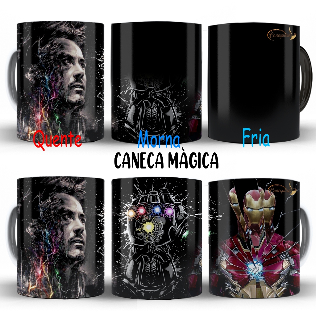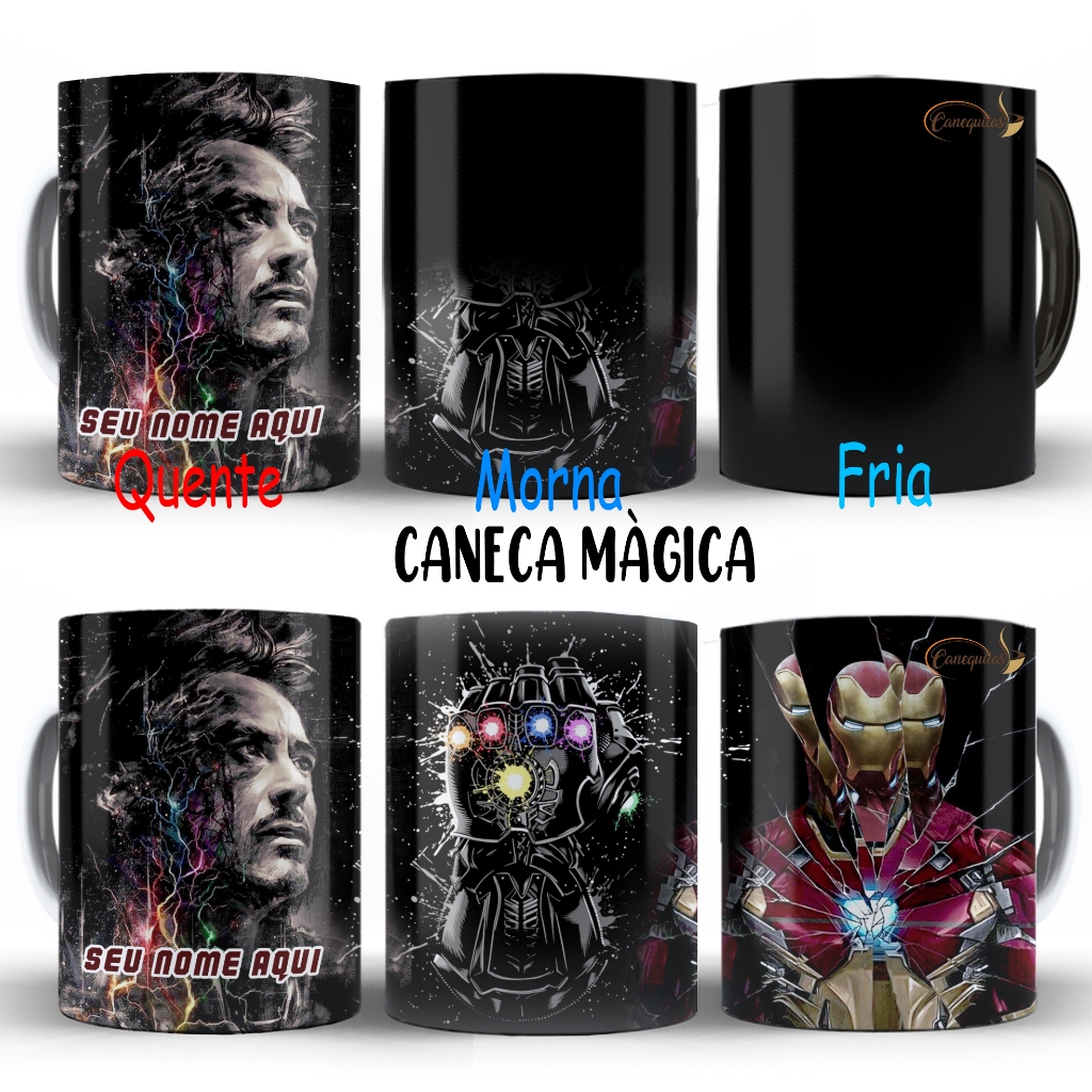 Caneca magica Homem de Ferro Tony Stark Iron Man Marvel Manopla Vingadores Com Nome