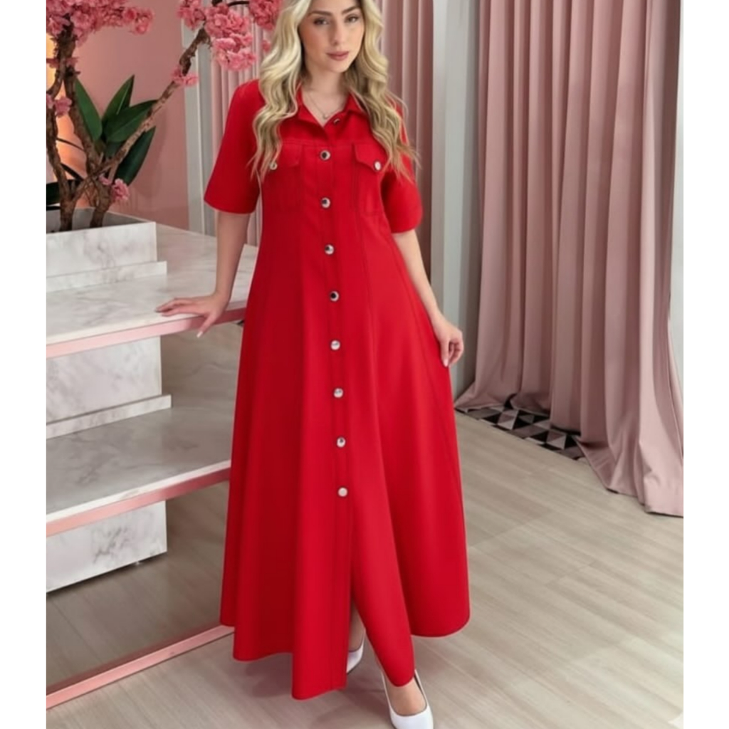 VESTIDO MIDI EM ALFAIATARIA ELEGANTE FESTAS IGREJA EVENTOS DIA A DIA