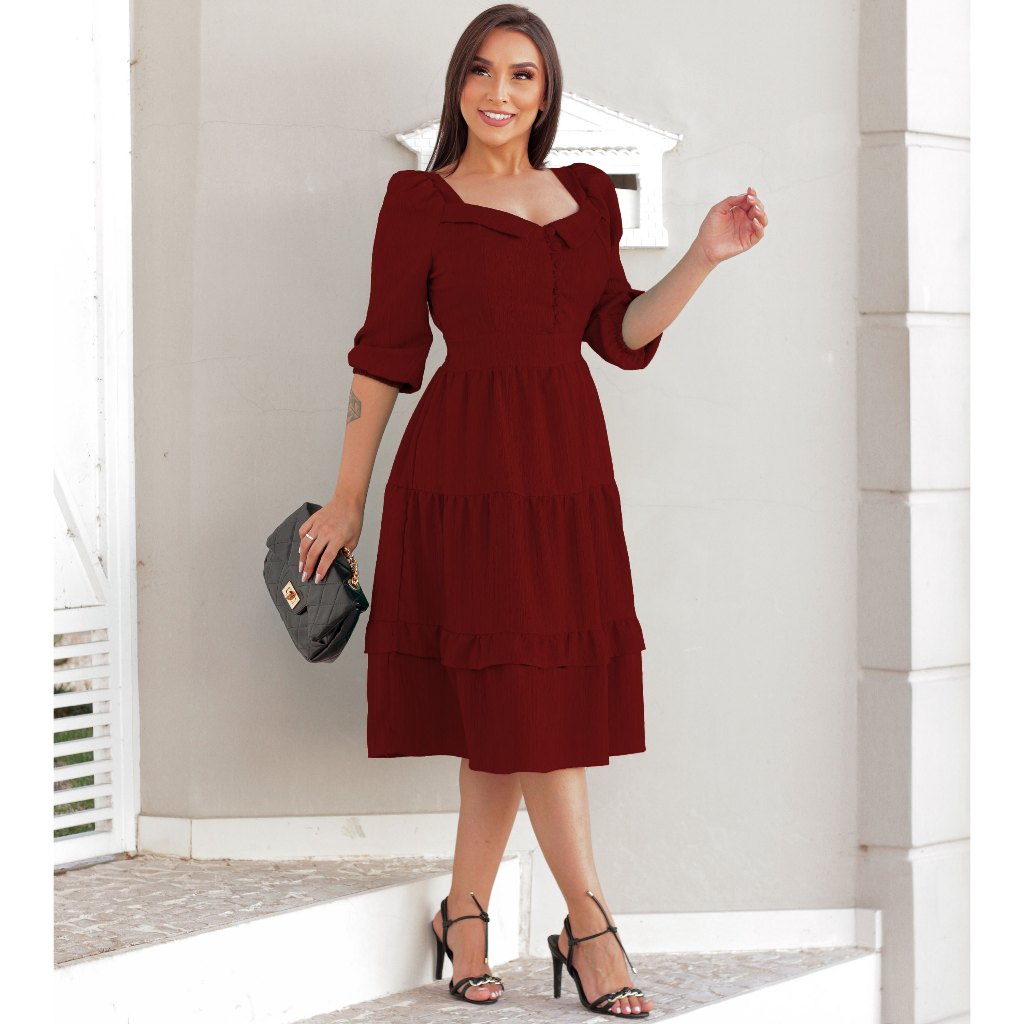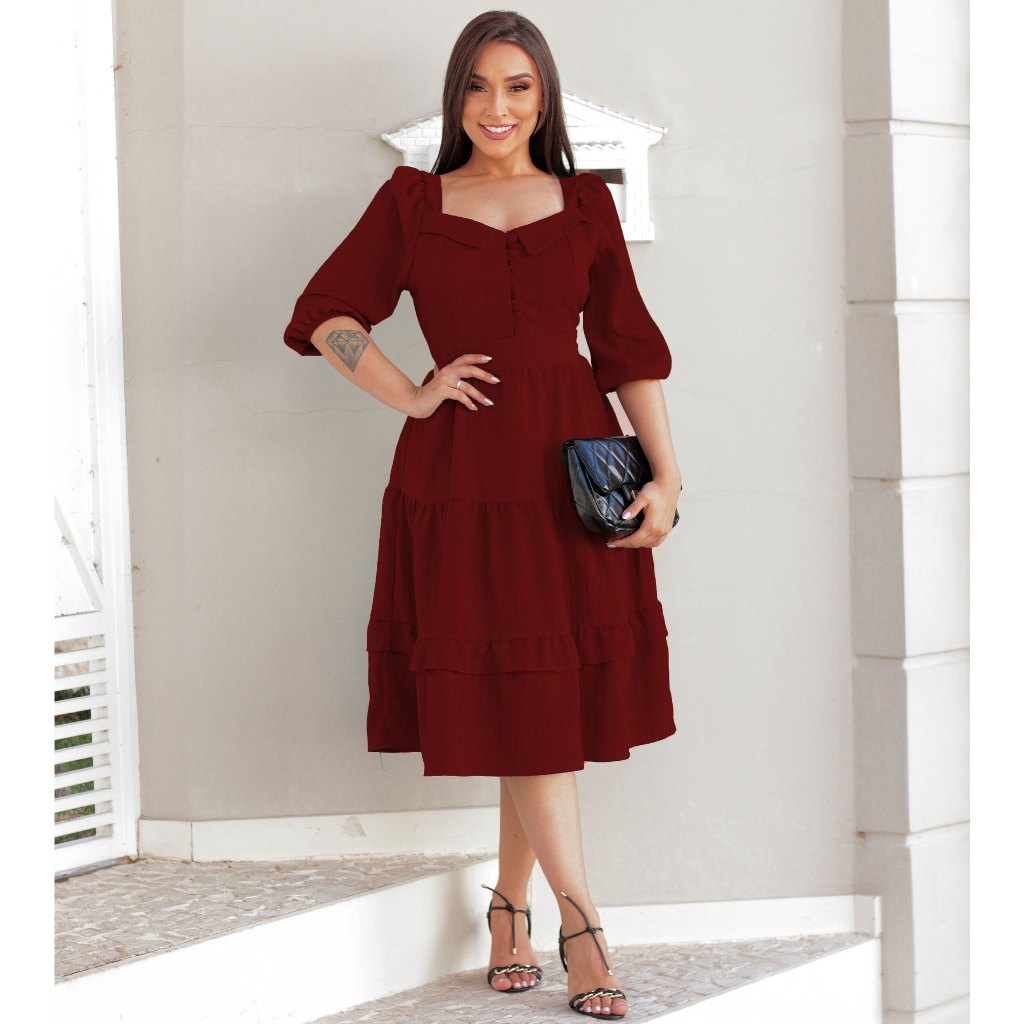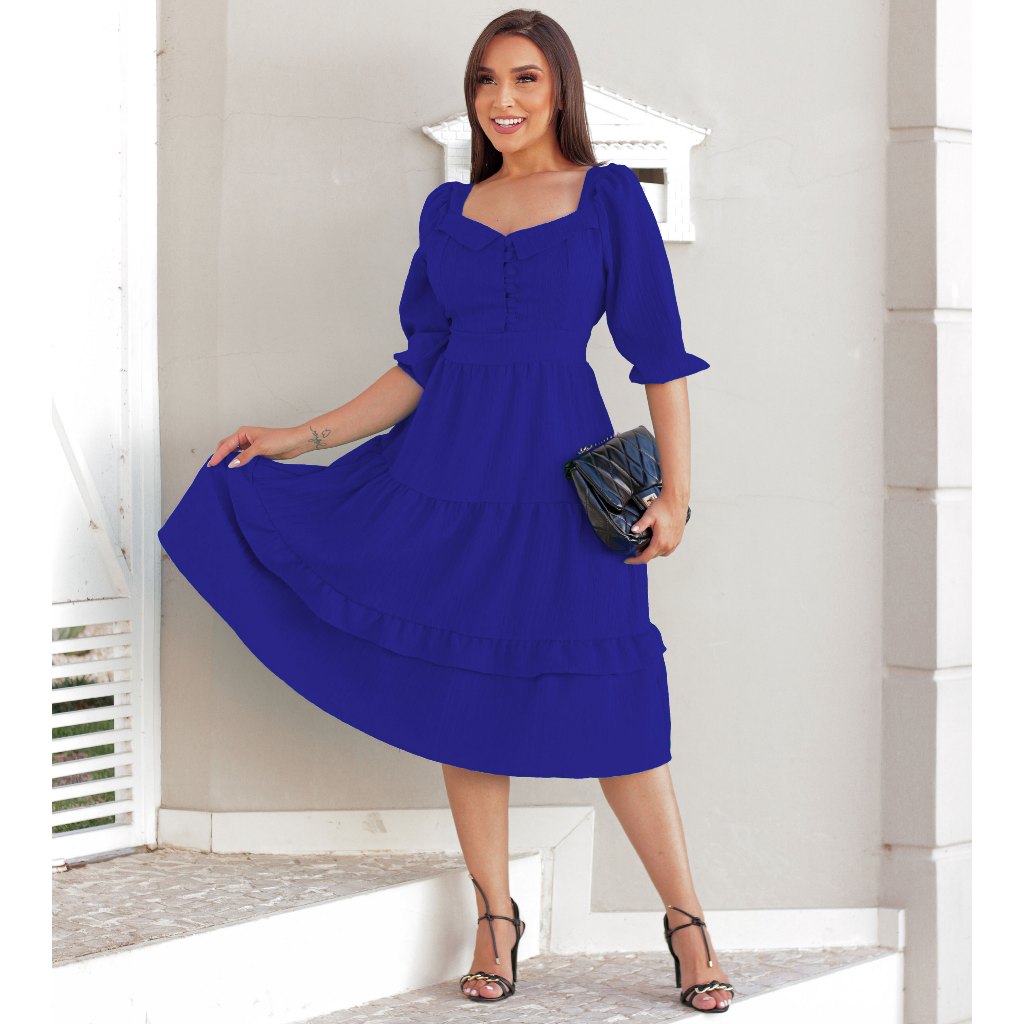 Vestido Moda Evangélica com Botões Encapados Super Luxo