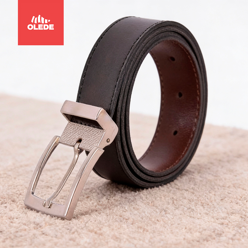 Kit com 2 ou 1 Cinto Social Masculino Couro Ecológico Dupla Face Preto e Marrom
