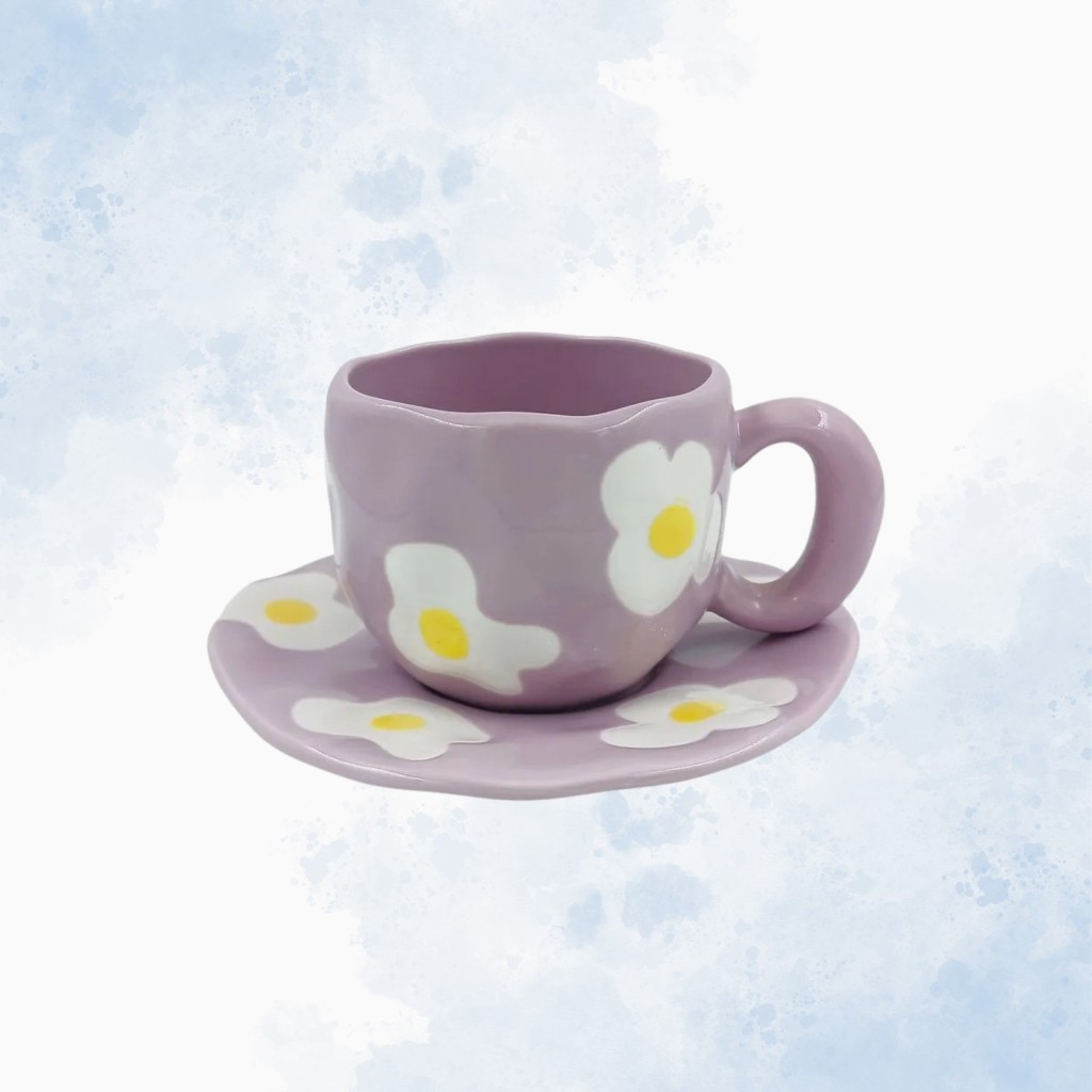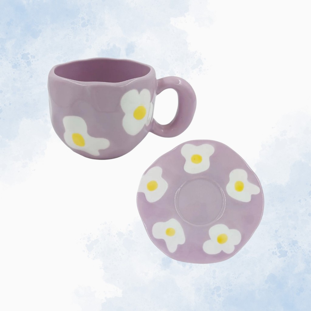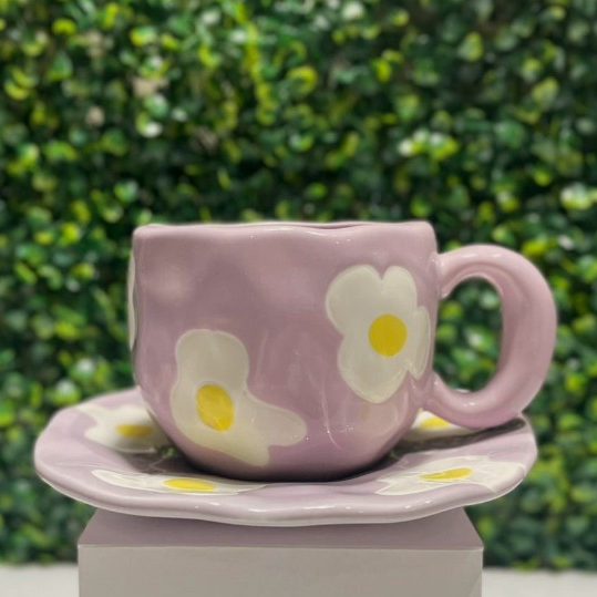 Conjunto Caneca com Pires Flores - 300ml