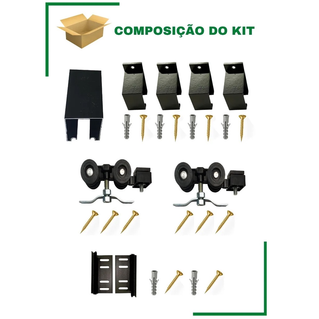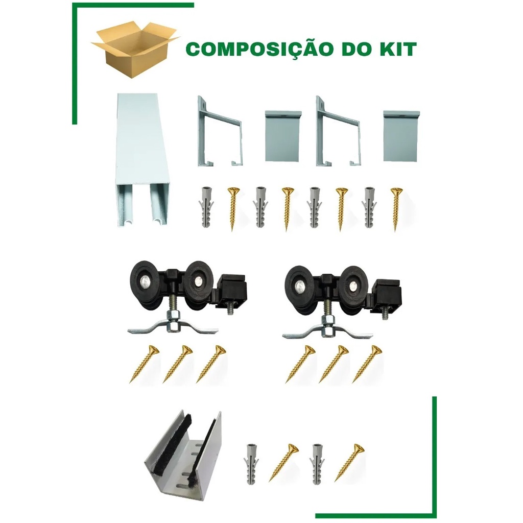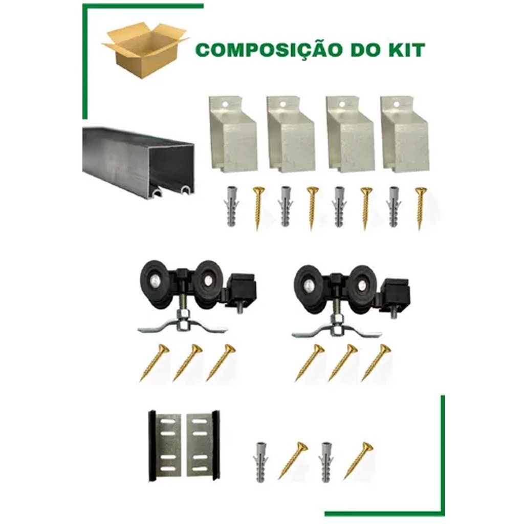 Kit Porta Correr Até 82cm Trilho Dividido De 1,6m Completo Com Tampa acabamentos