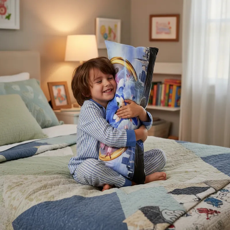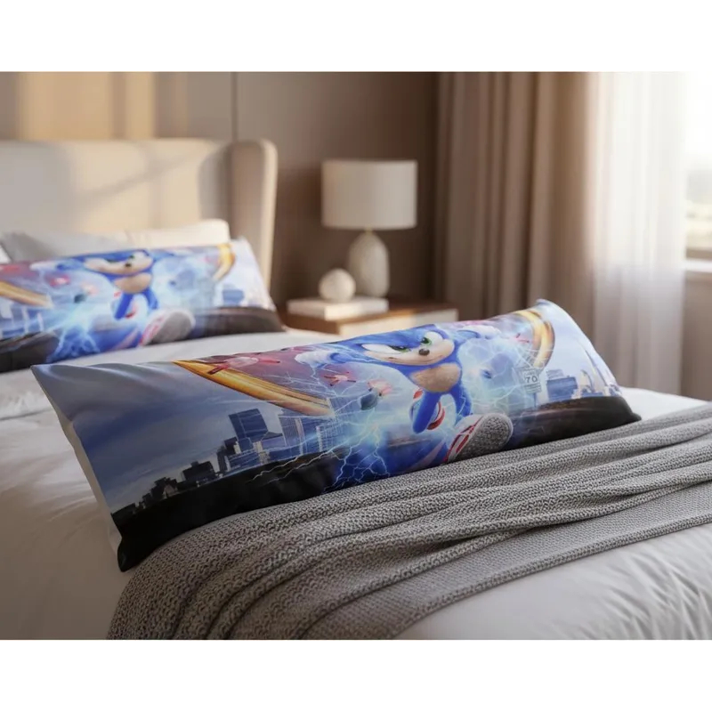 Travesseiro De Corpo Infantil Abraço Sonic Quarto Menino 90 x 30