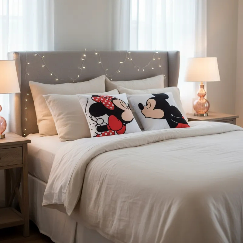 kit 2 capas de almofada Mickey e Minnie Beijo Casal 45x45