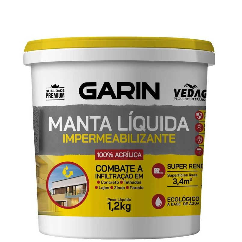 Manta Líquida Emborrachada Impermeabilizante Infiltração Laje Telhado Parede 1,2kg 3,6kg Garin Eurodecor