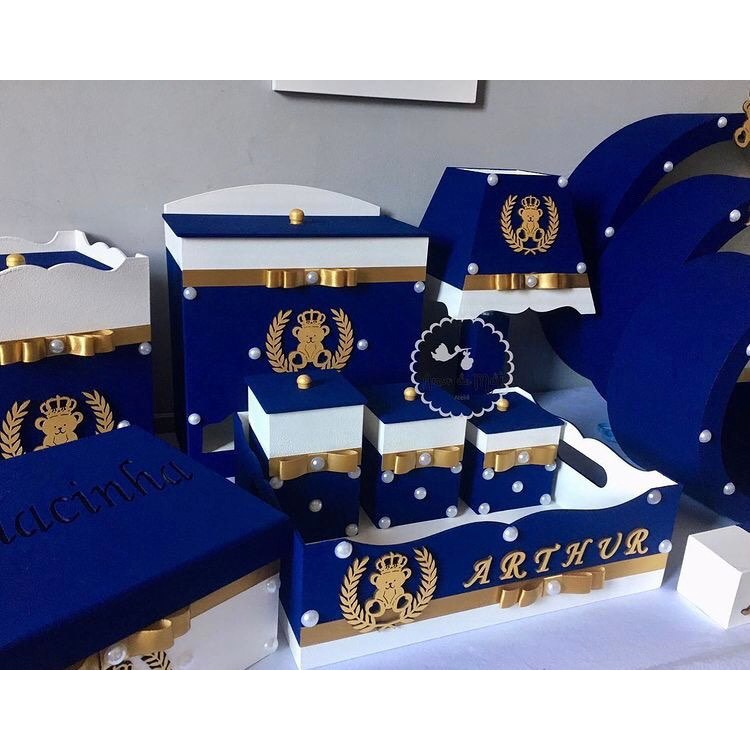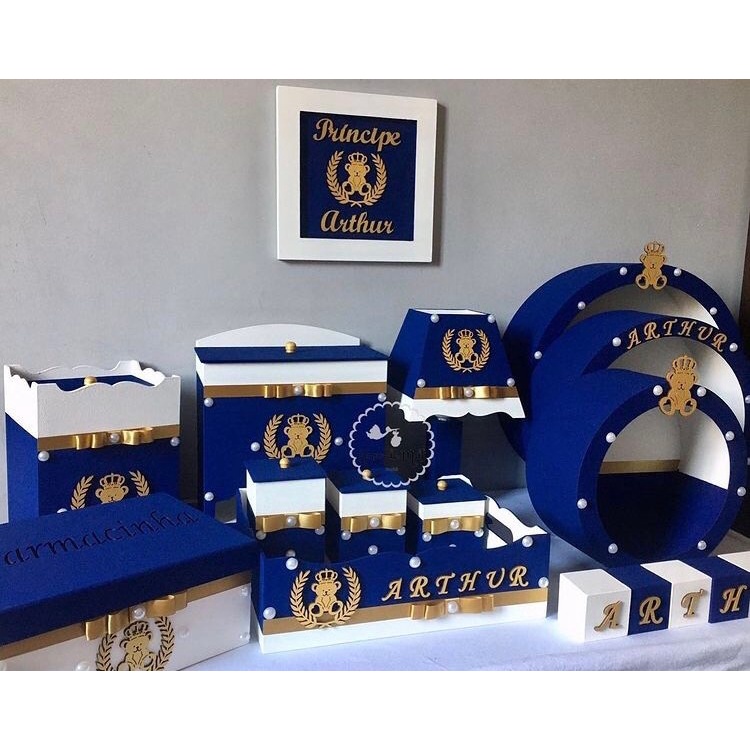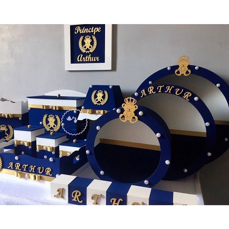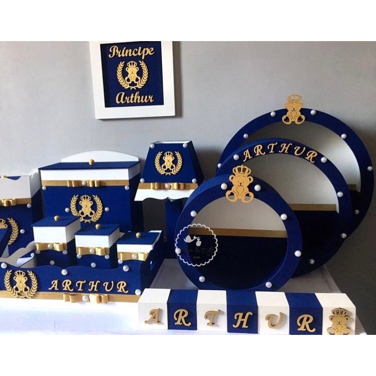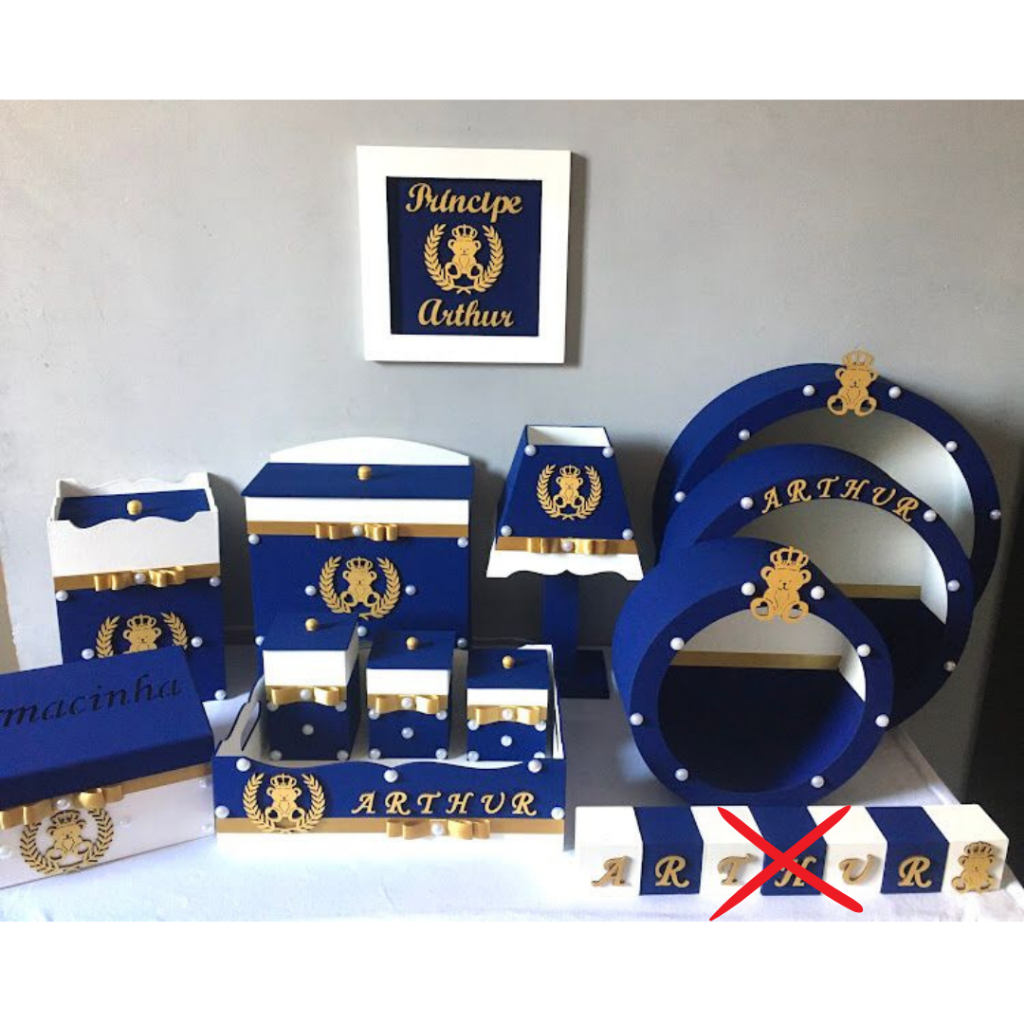 Kit Higiene Bebê MDF Menino Personalizado Com Nome / Tema Urso Príncipe Realeza