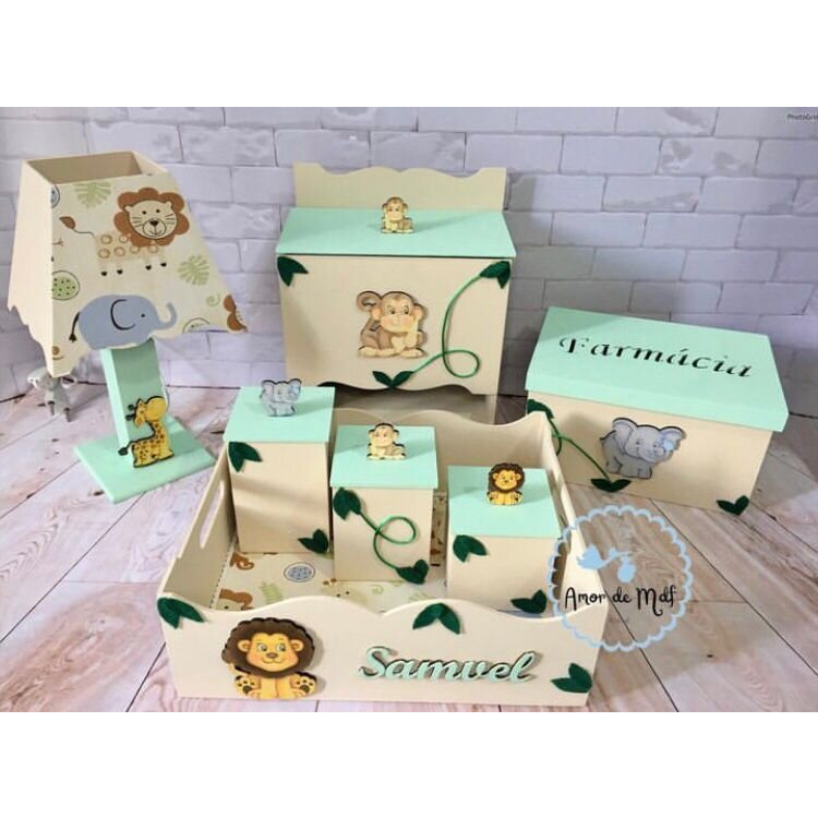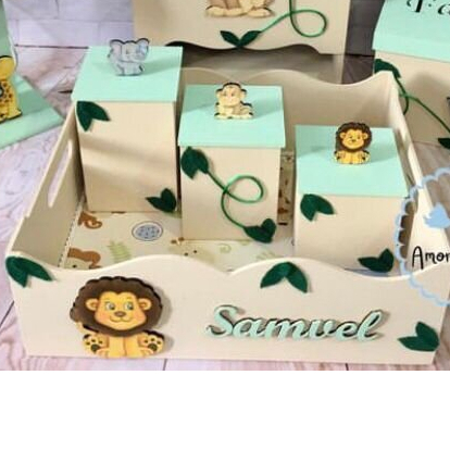 Kit Higiene Menino Personalizado Safari Mdf Bebê