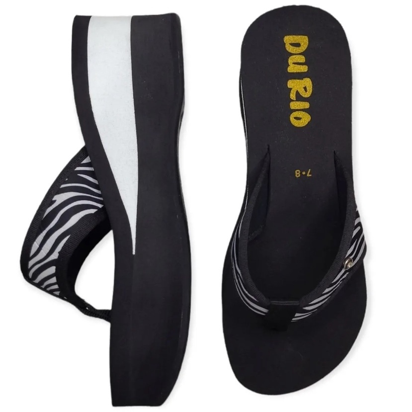 Tamaco Feminino Sandalia Chinelo de Dedo Anabela Alto Plataforma DuRio Flatform