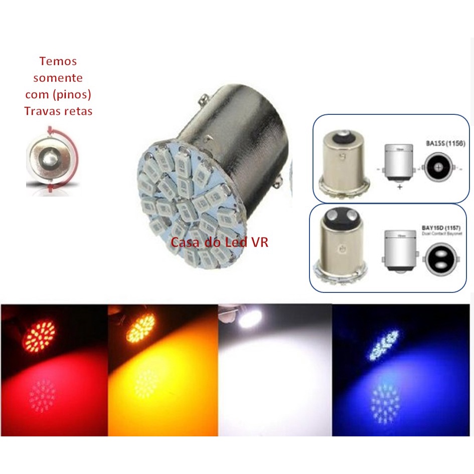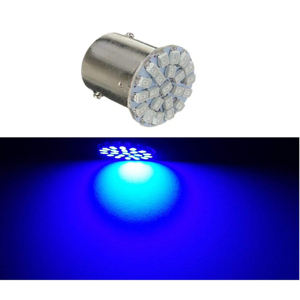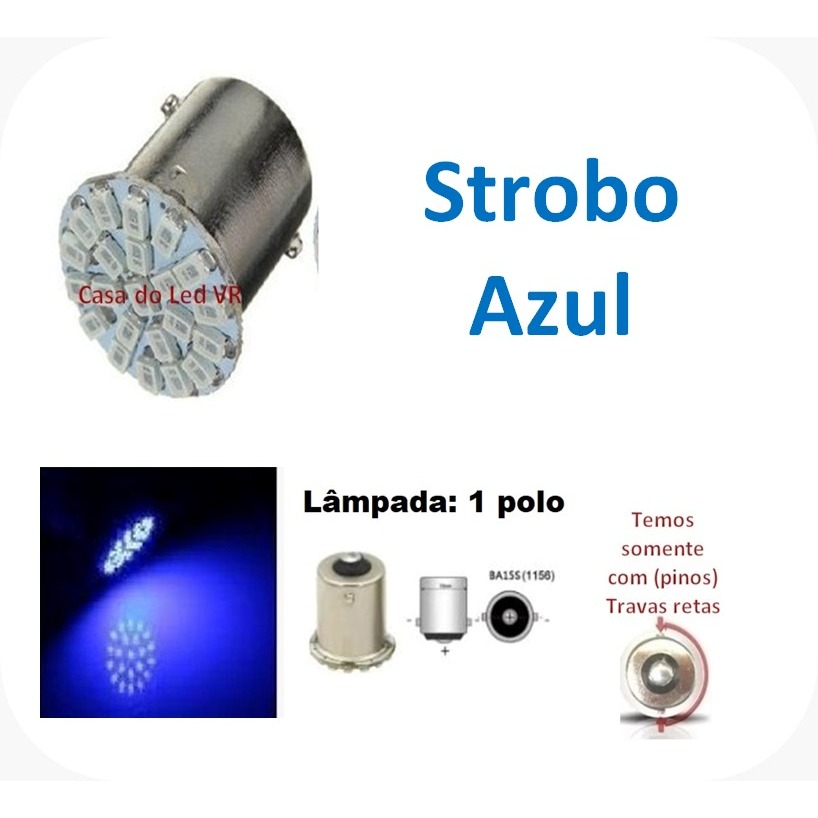 4x Lampada 1 polo 22 leds STROBO FLASH AZUL BRANCA VERMELHA P21w 1156 12v