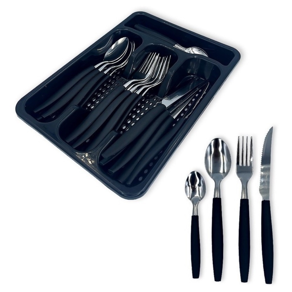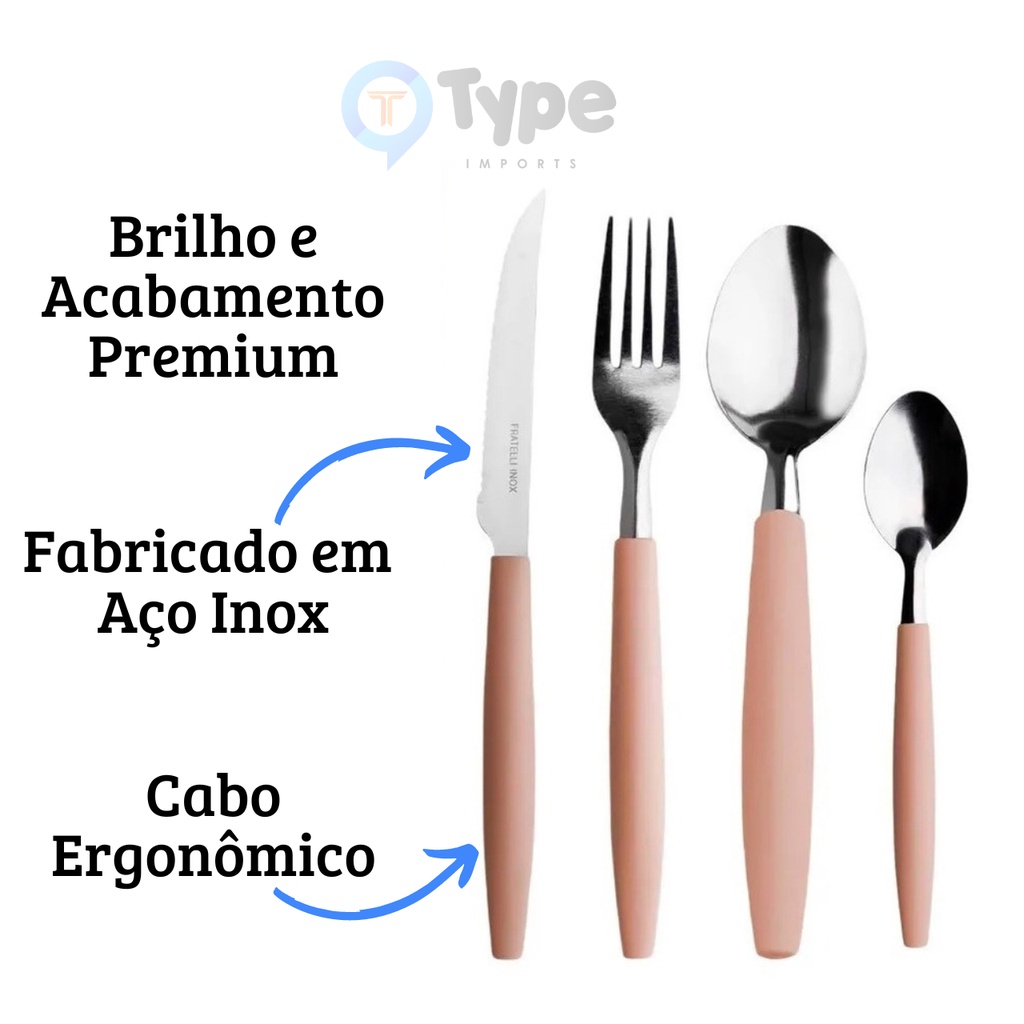 Jogo de Talheres em Aço Inox 25 Peças Faqueiro Kit Faca Garfo Colher com Porta Talheres de Gaveta