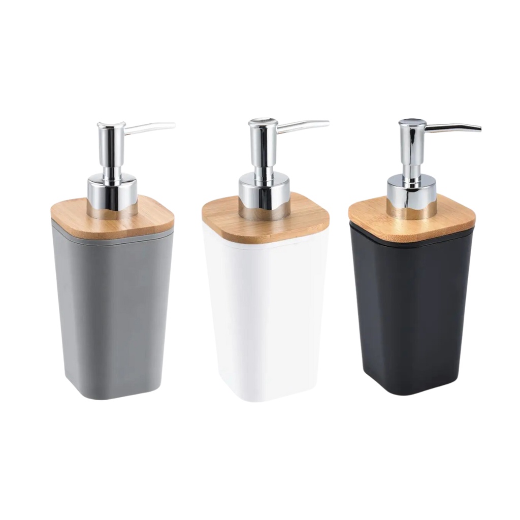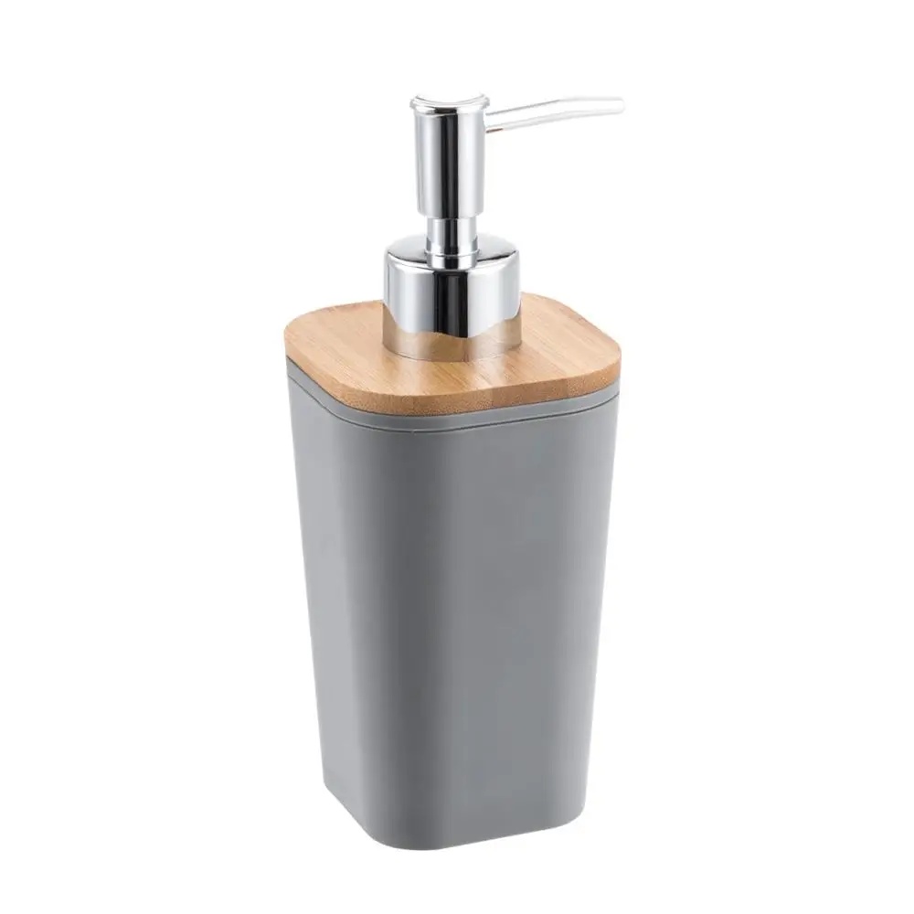 Dispenser Sabonete Liquido 400ML Saboneteira Banheiro Moderno Tampa de Bambu Lavabo Porta Detergente Cozinha Luxo