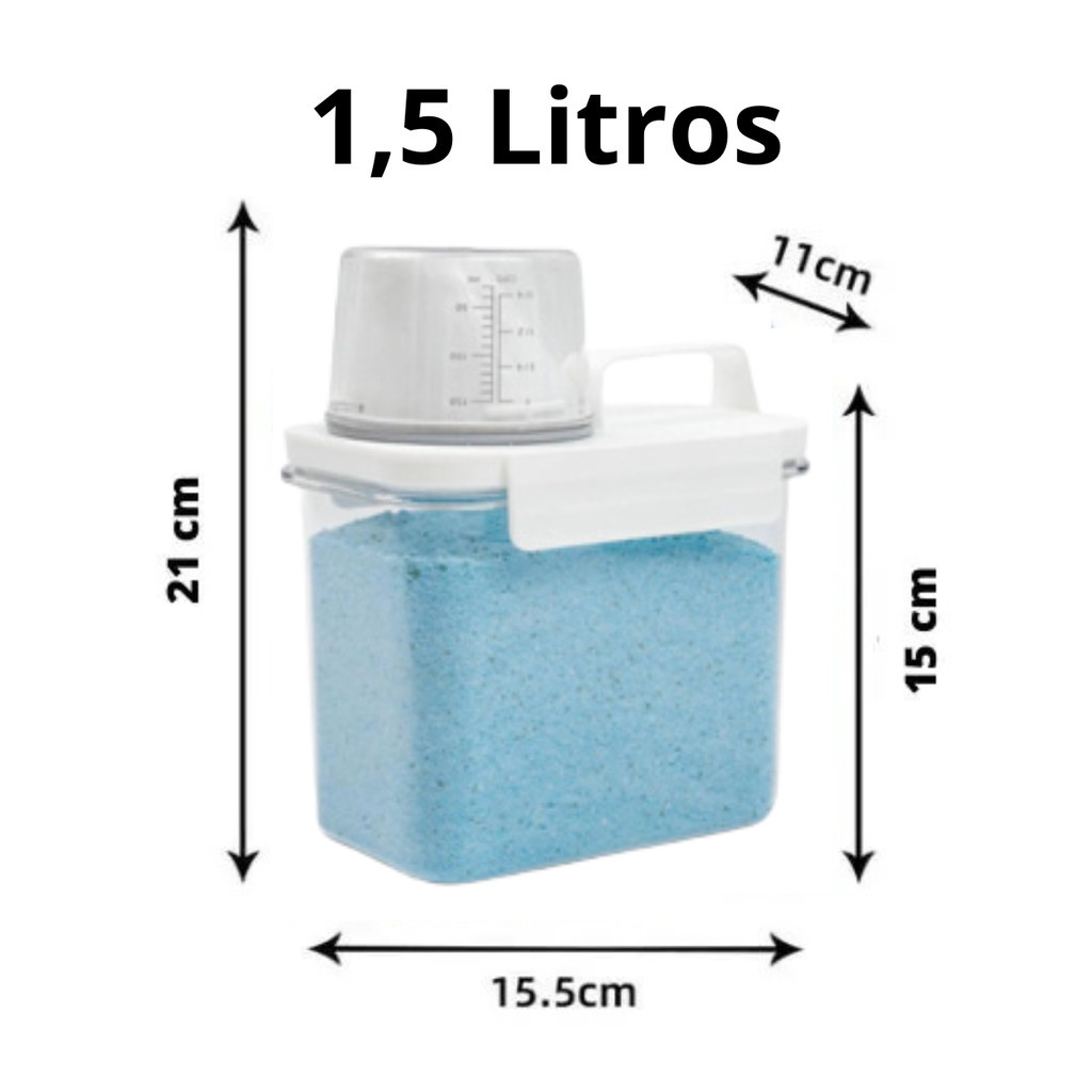 Pote Para Sabão em Pó Amaciante 1,5 Litros com Dosador Hermético Lavanderia Organizada