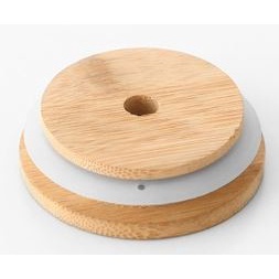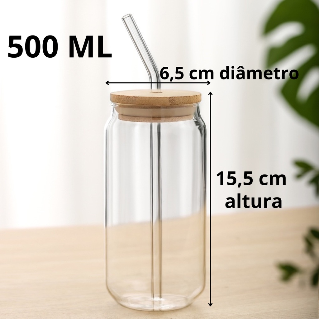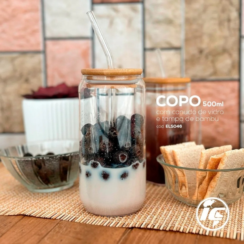 Copo de Vidro com Tampa de Bambu e Canudo de Vidro 500 ML Drinks Caipirinha Vedação Café Bebidas