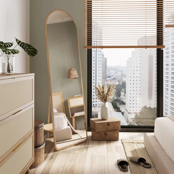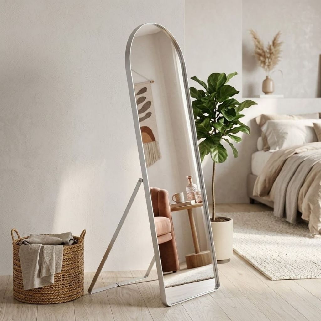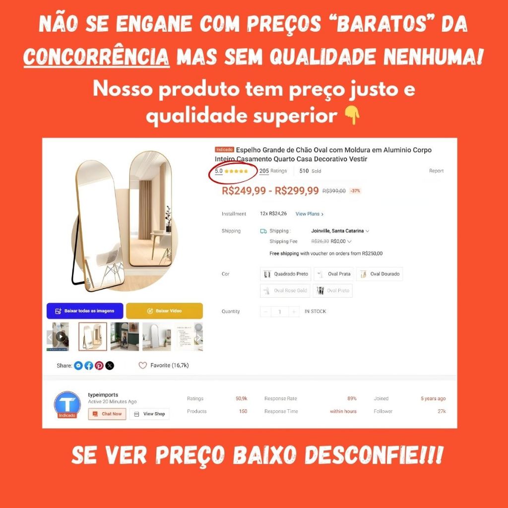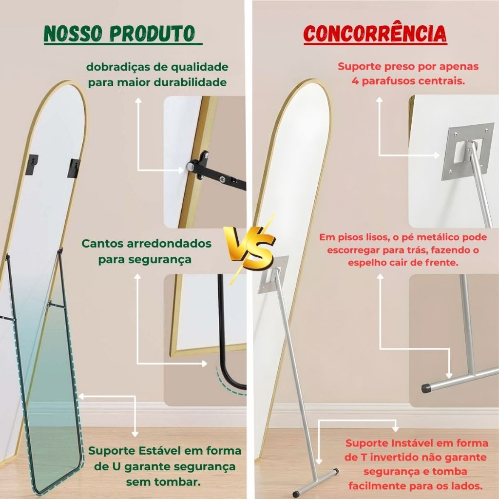 Espelho de Chão para Casamento 1,46x36cm Corpo Inteiro Moldura em Aluminio Dourado Parede Moderno