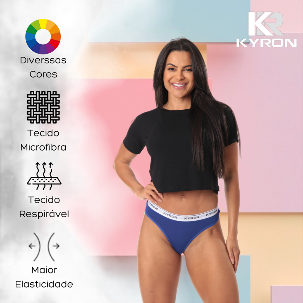 Kit 5 Calcinhas Fio Dental Kyron De Microfibra Forro Duplo Levanta Bumbum