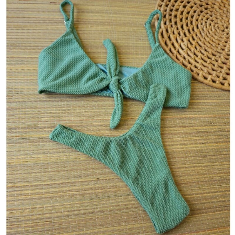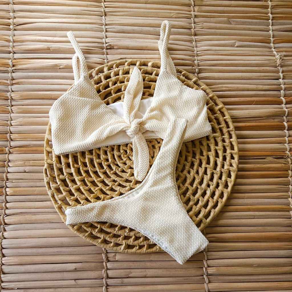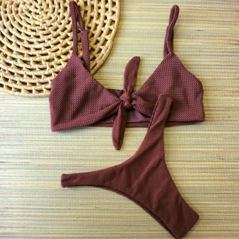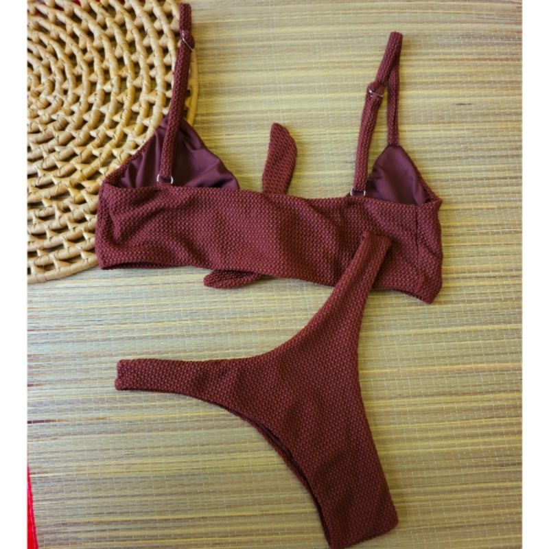 Biquíni Asa Delta com top amarração na frente Texturizado –feito em tecido carmel poliamida uv