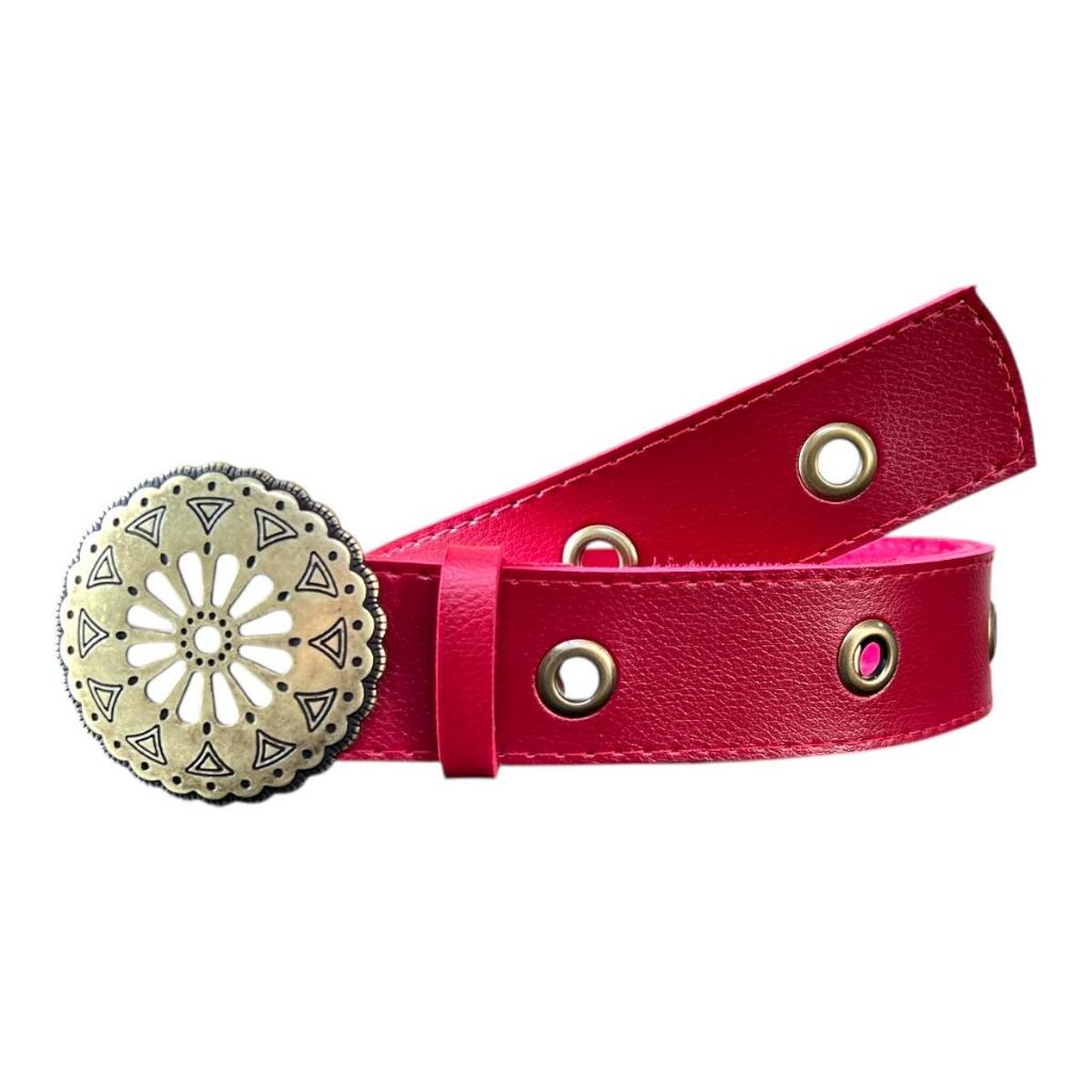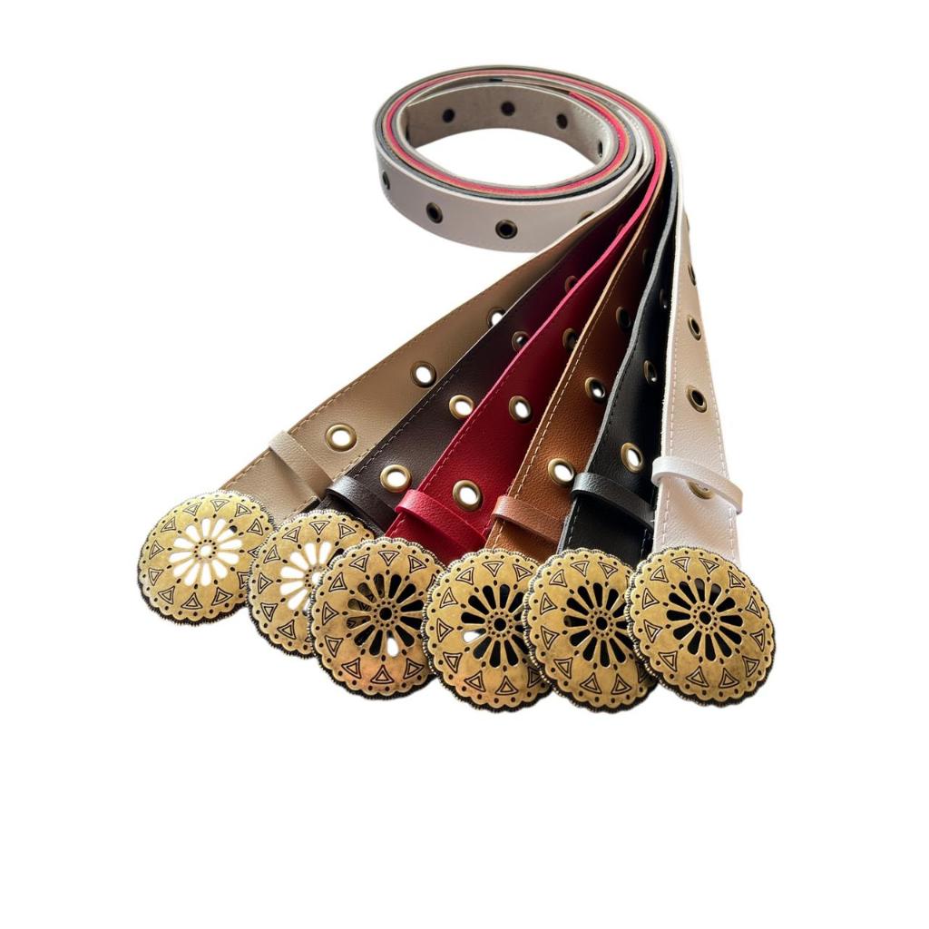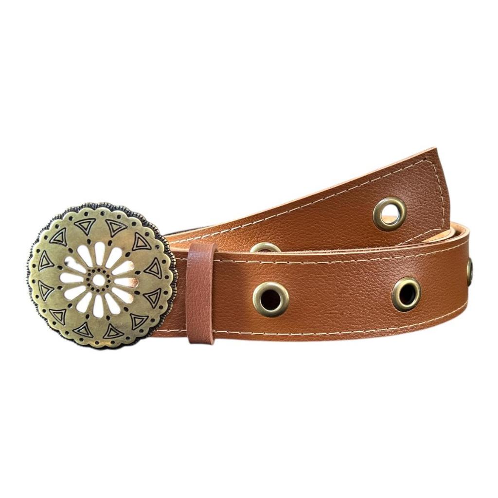 Cinto Boho Chic Country Feminino Fivela Bola Moda Com Ilhos 45 - Dani