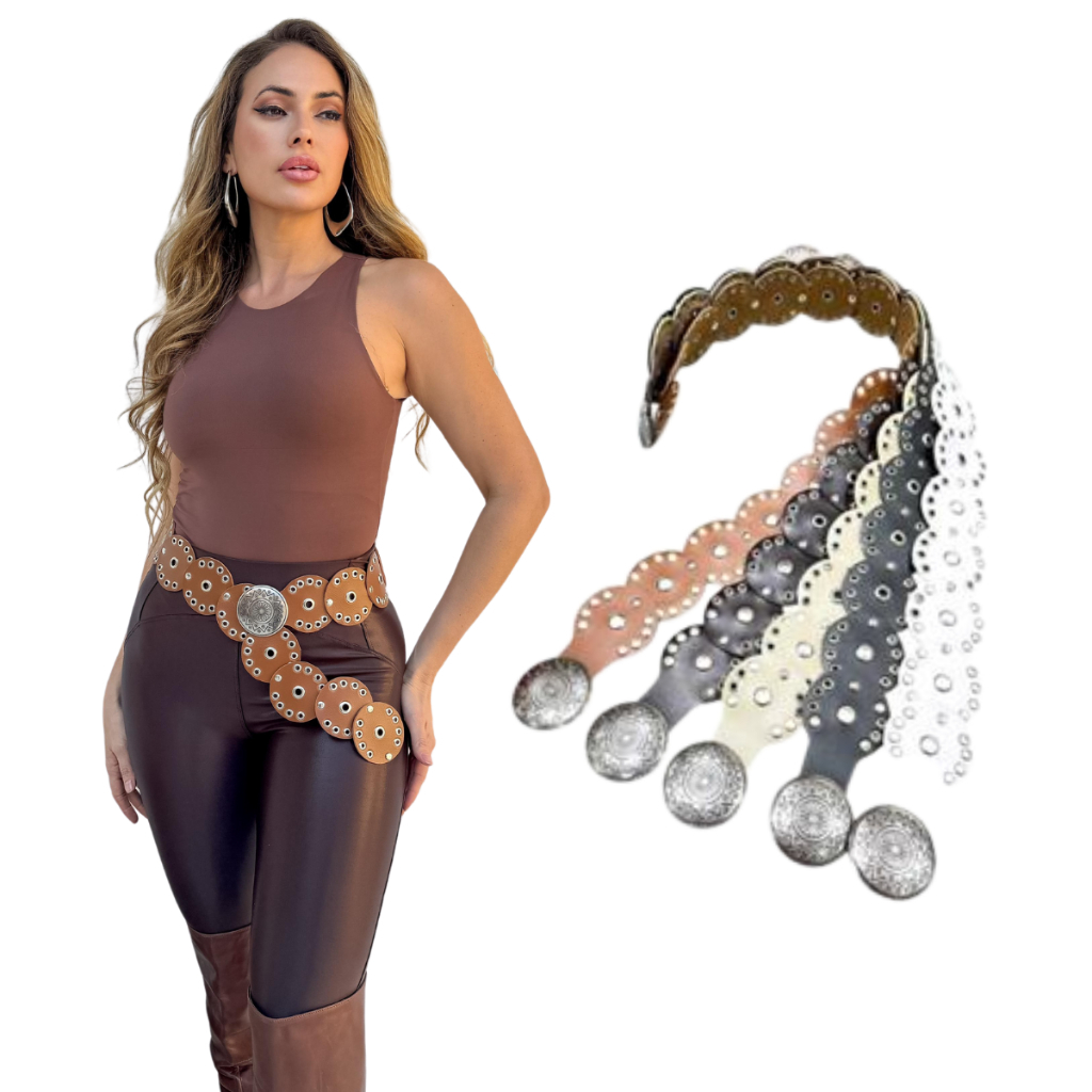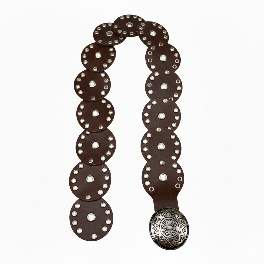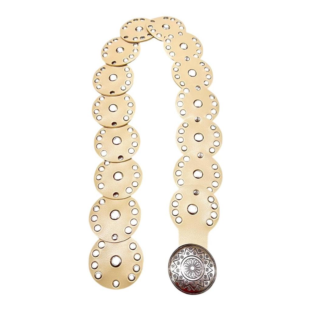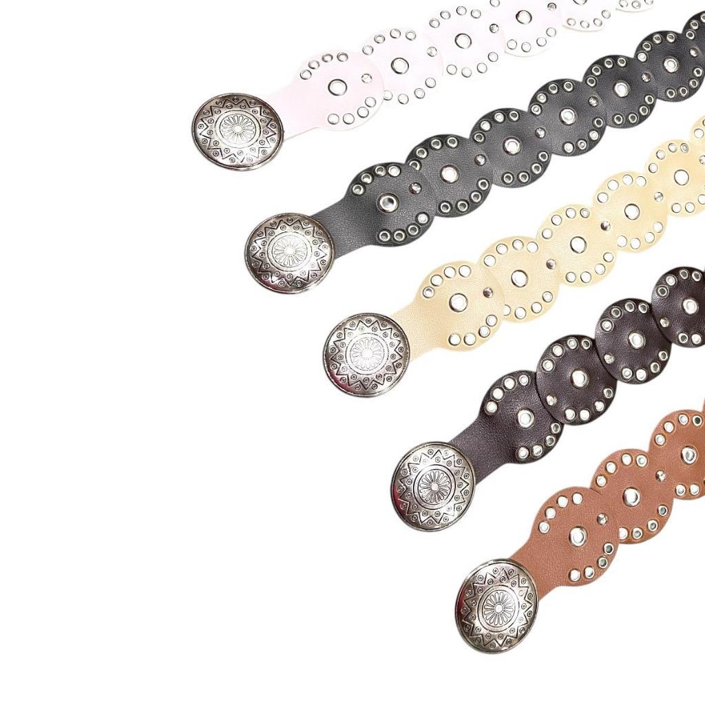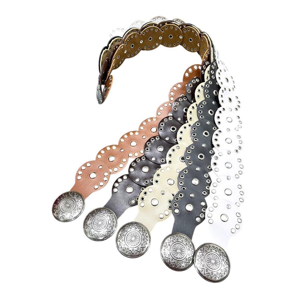 Cinto Largo Redondo Cinto Boho Feminino Vintage Prata Couro PU Oco Ocidental Cowboy Cinto Country Lançamento - Mandala