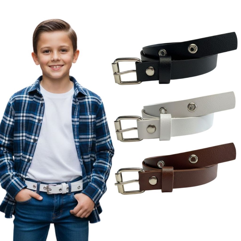 Kit 3 Cintos Infantil Masculino Kids Couro Sintético Fivela Prata Ilhós na Ponta 2cm largura - Davi