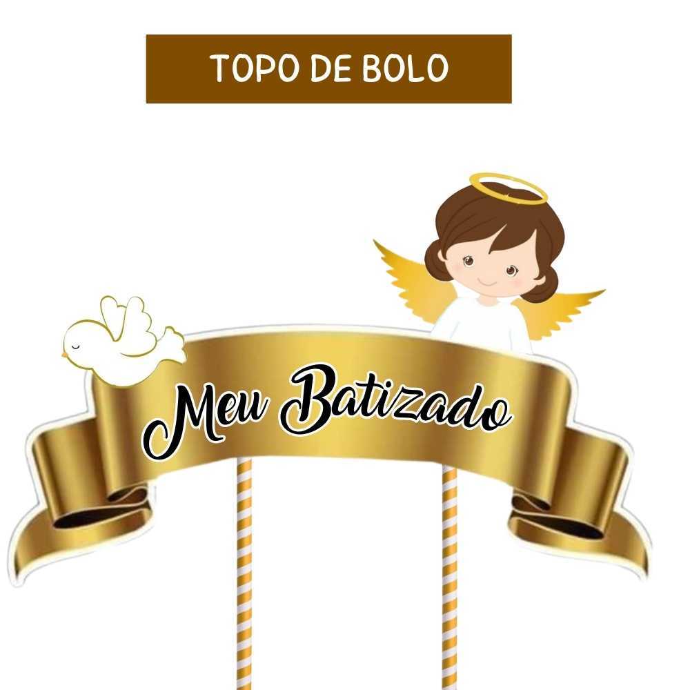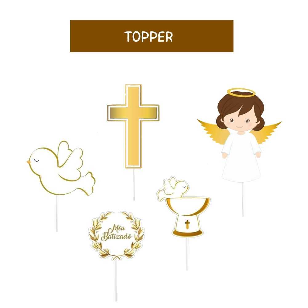 Kit 1 Topo De Bolo Batizado Menina Dourado + 5 Topper Doce