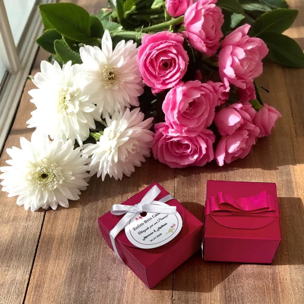 80 Caixinhas p/ Bem Casado Lembrancinha Branco/ Kraft ou verde 6cm