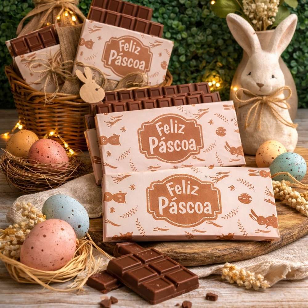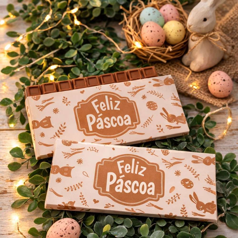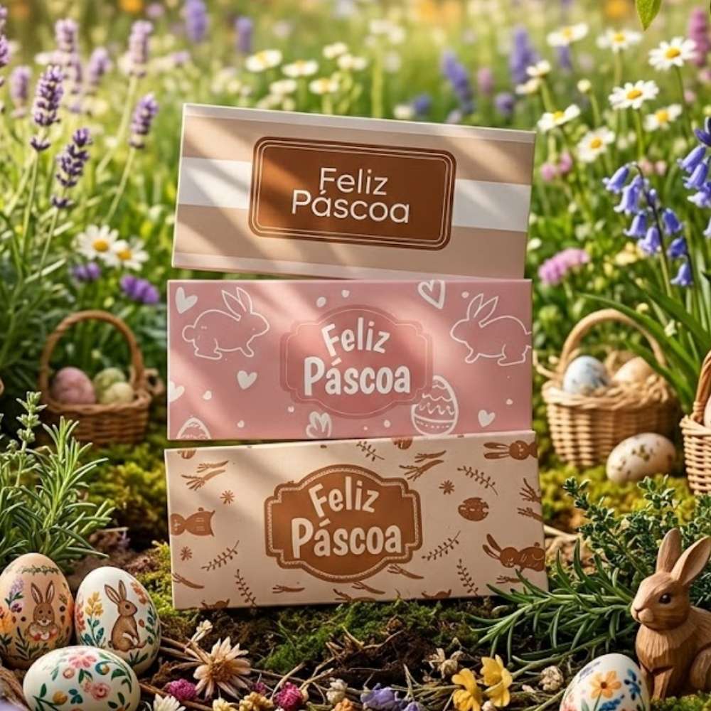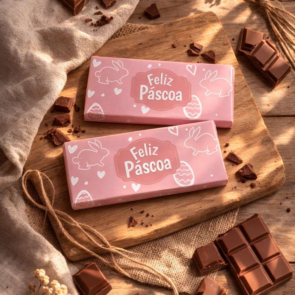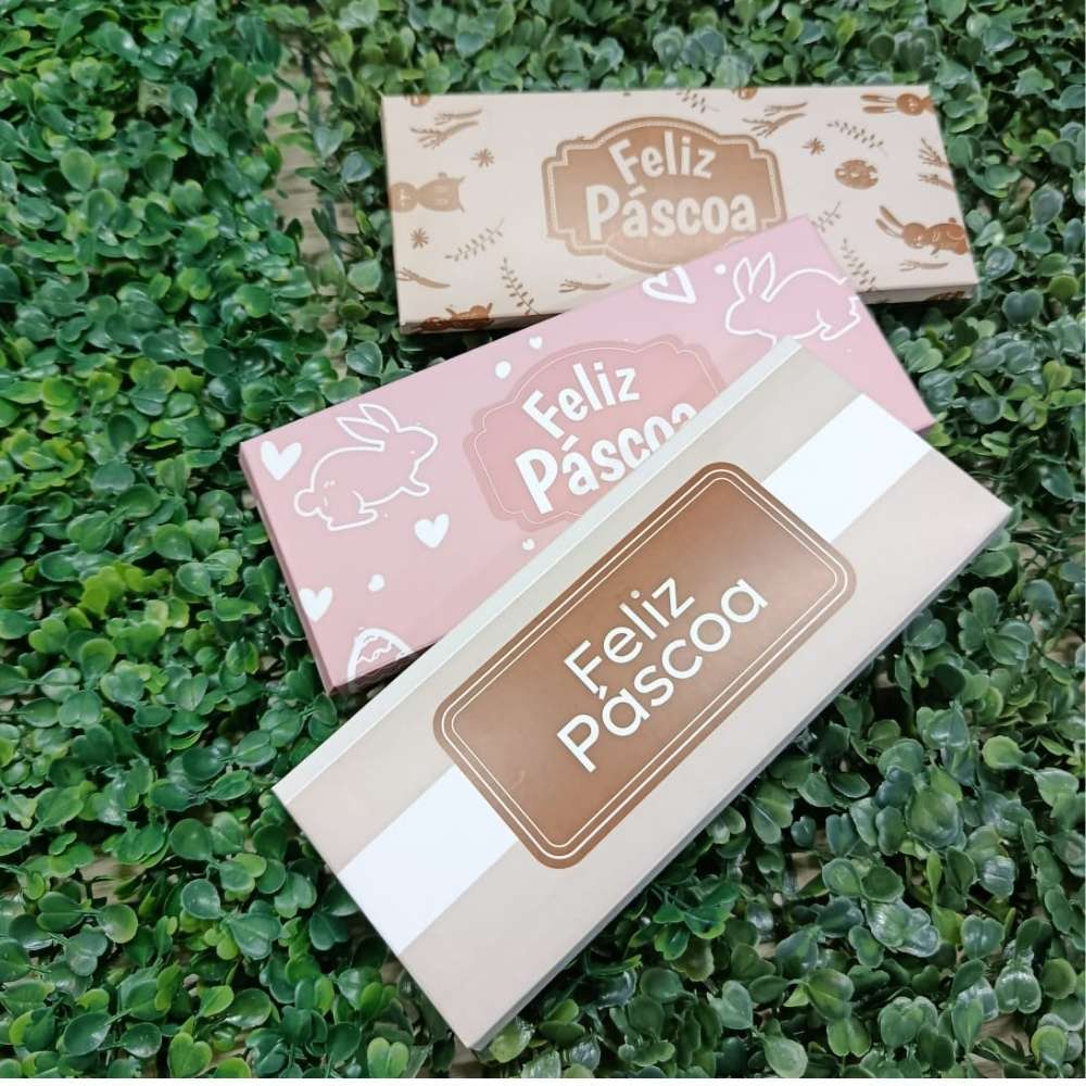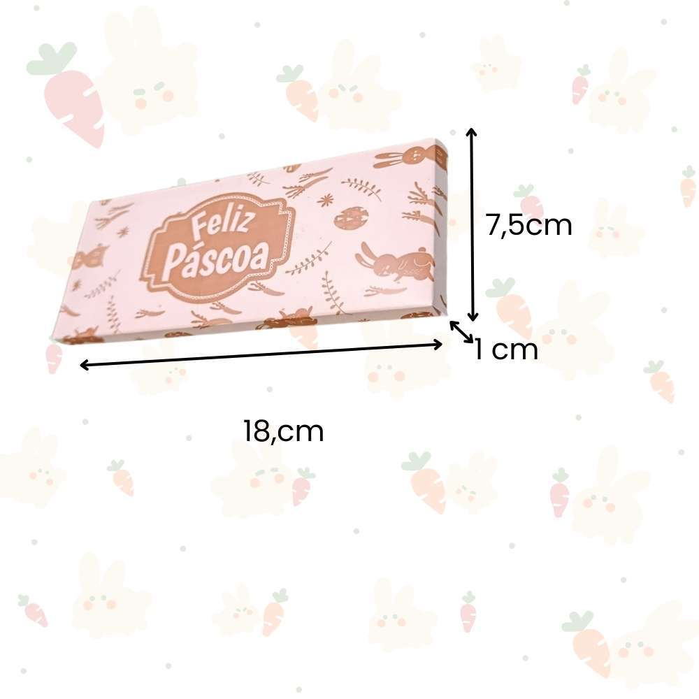 PORTA CAIXA BARRA DE CHOCOLATE PÁSCOA COELHO ROSA - FELIZ PÁSCOA 10/20/30/40 Unidades