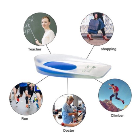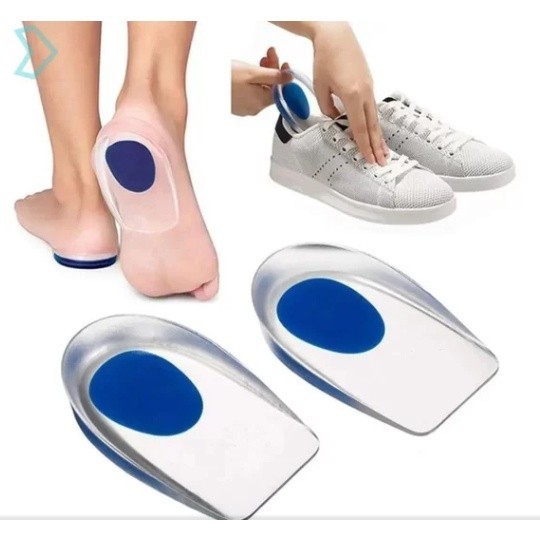 Palmilha Gel Ortopedico Silicone Calcanhar Dor Fascite Aumento de Altura Calcanheira Anti Impacto azul