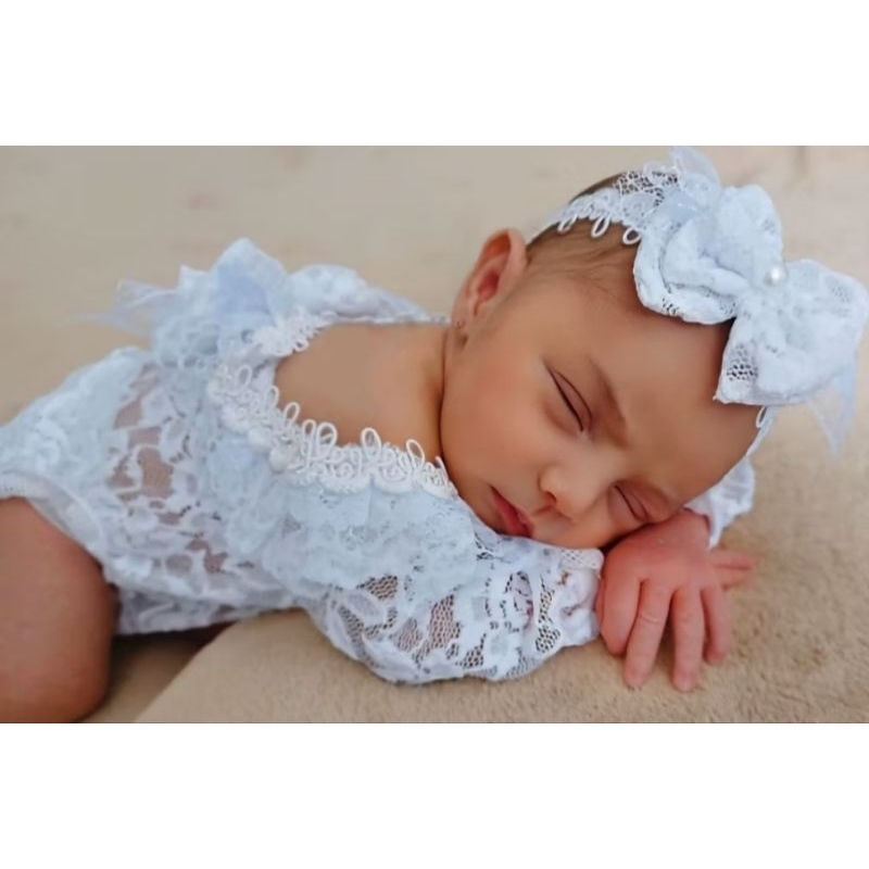 body de renda branco + travesseirinho roupa Newborn bori bore roupinha roupa romper ensaio fotográfico acompanhamento
