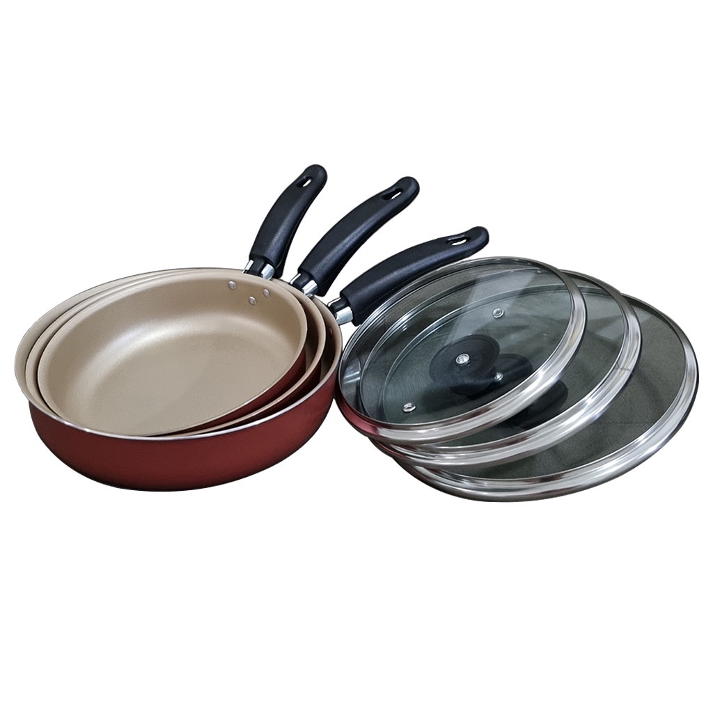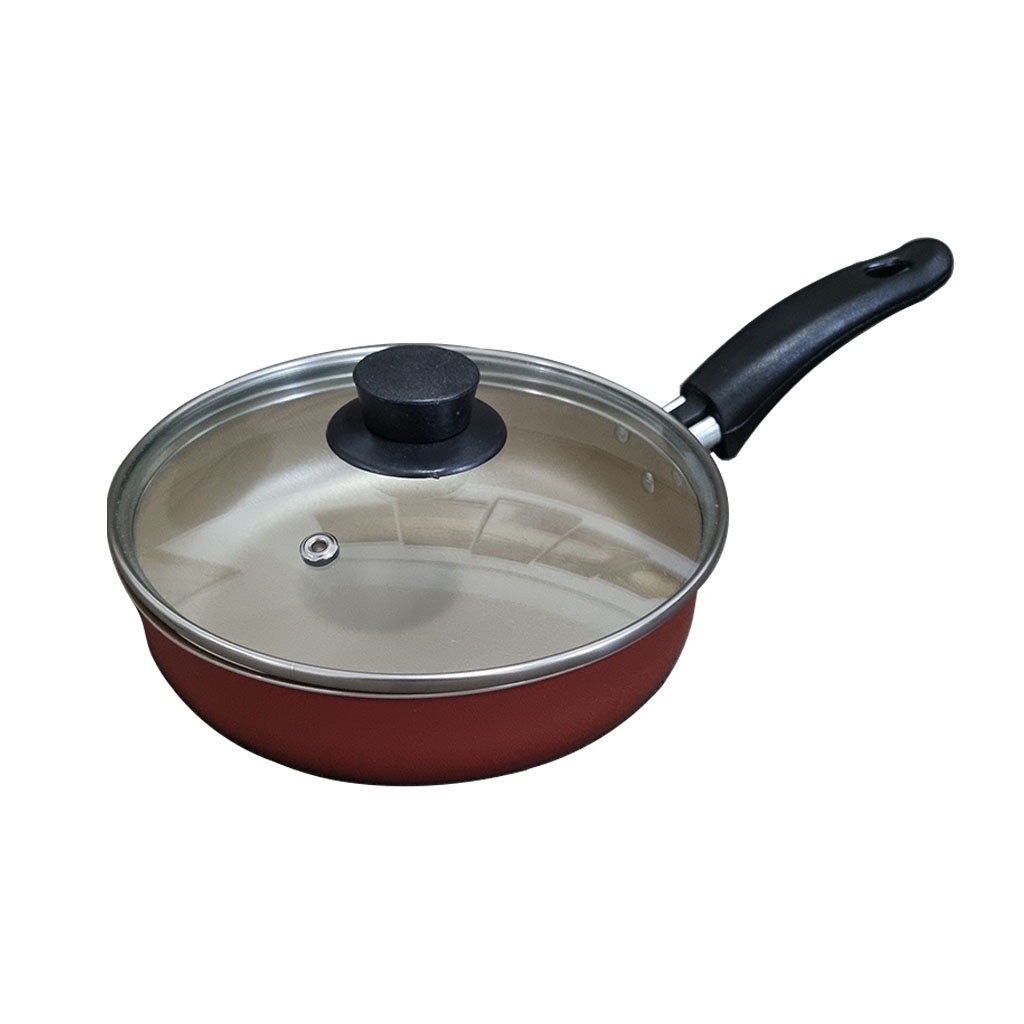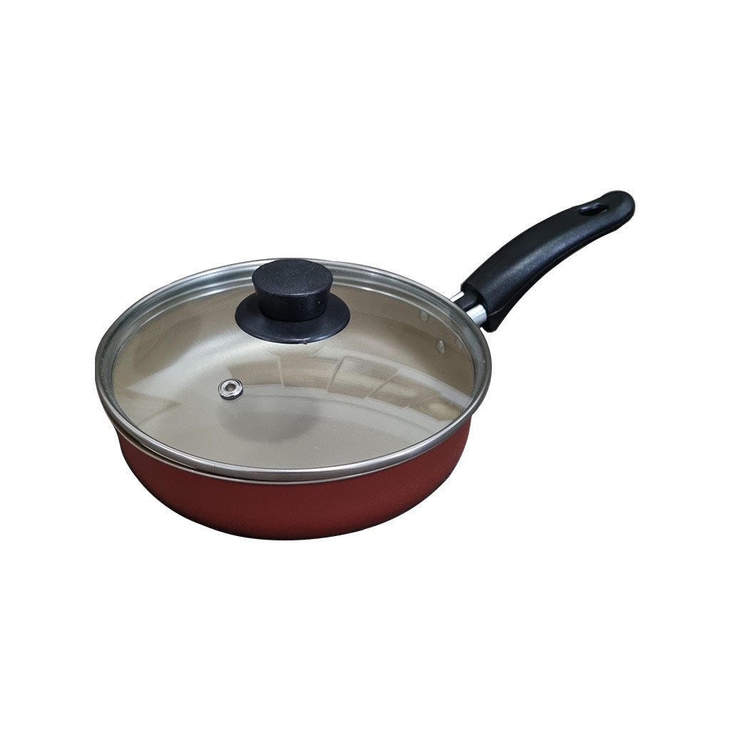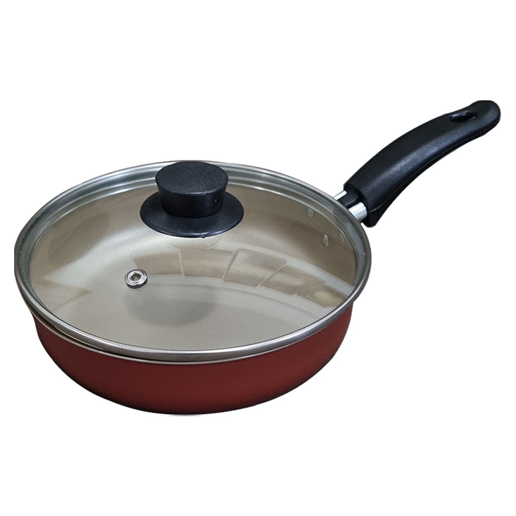 Frigideira Antiaderente Teflon Com Tampa de Vidro Cereja e Interno Dourado