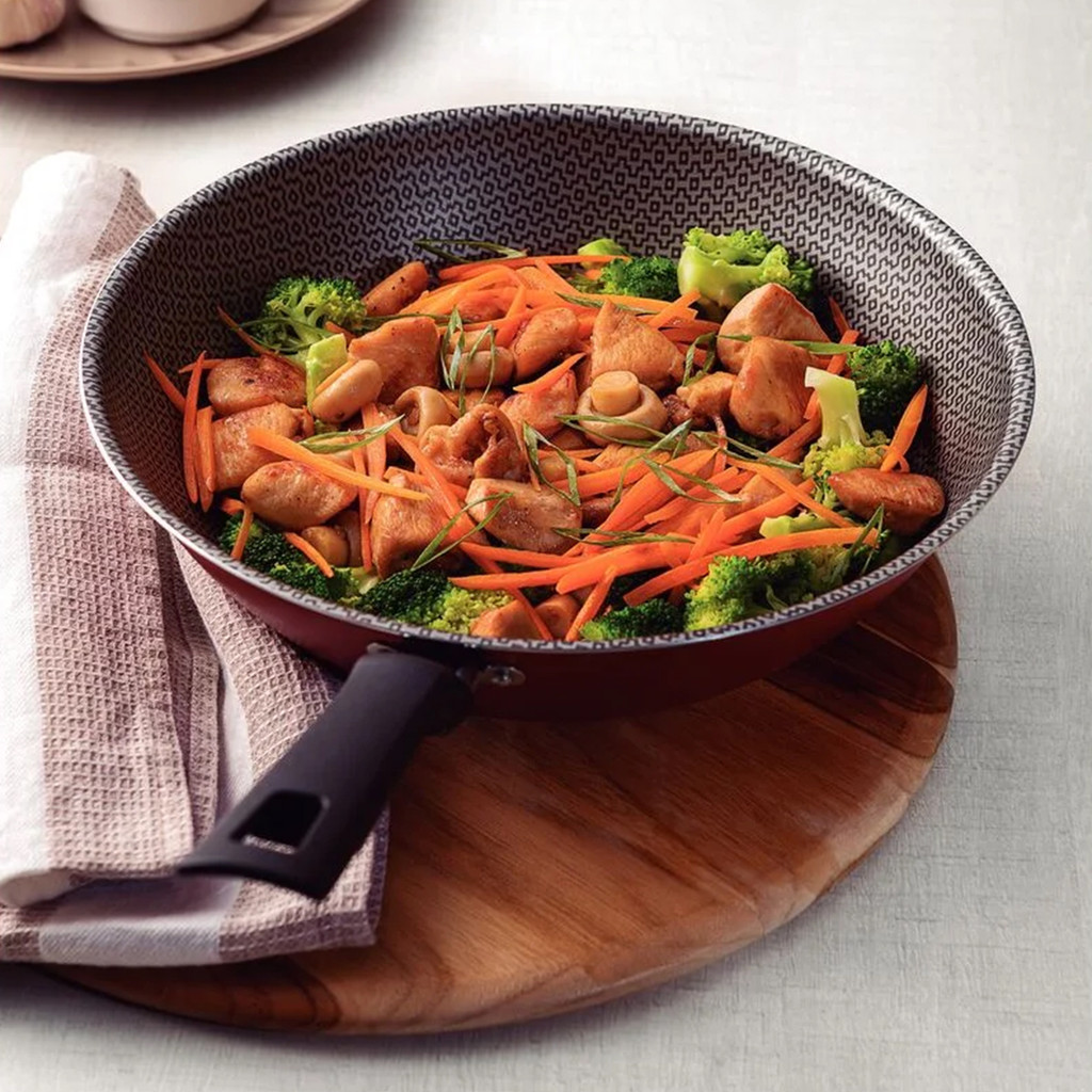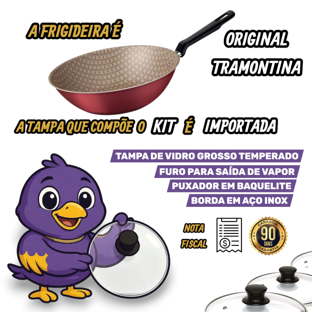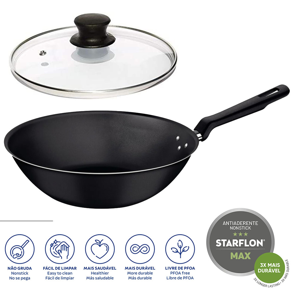 Frigideira Tramontina Antiaderente WOK Funda 28 Cm 3,6 L Loreto Grande Tampa De Vidro Opcional