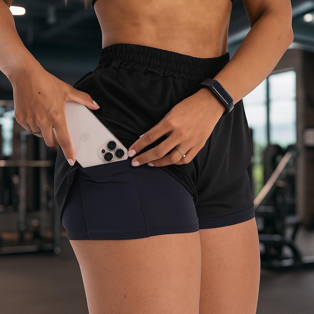 Short 2 em 1 Feminino Academia Bermuda Dupla Para Treino Caminhada e Outros Esportes