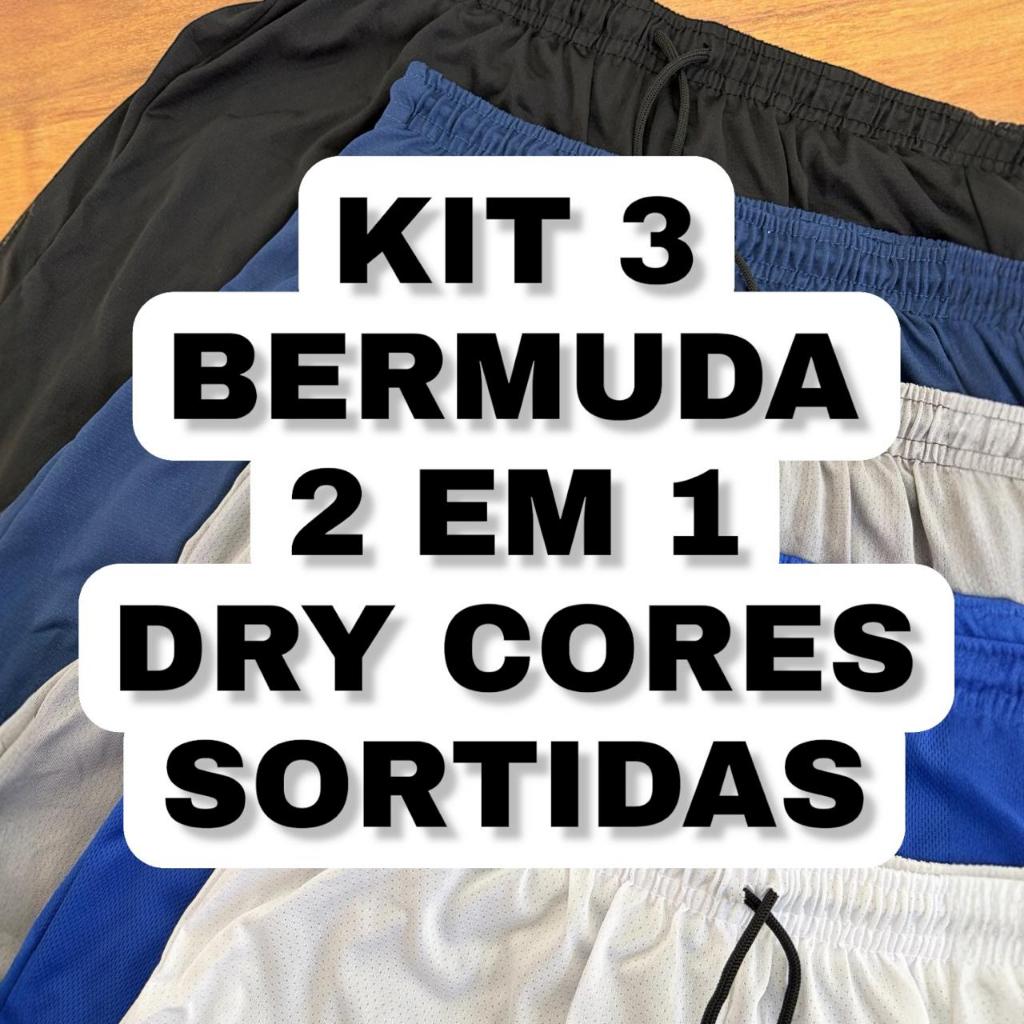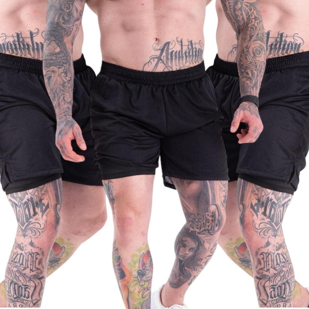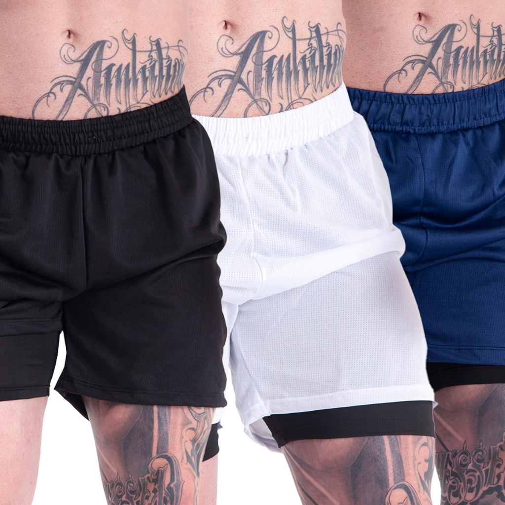 Kit 3 Shorts 2 em 1 Iron P Até G2 Para Academia Forrados Com Bolso Treino Esporte