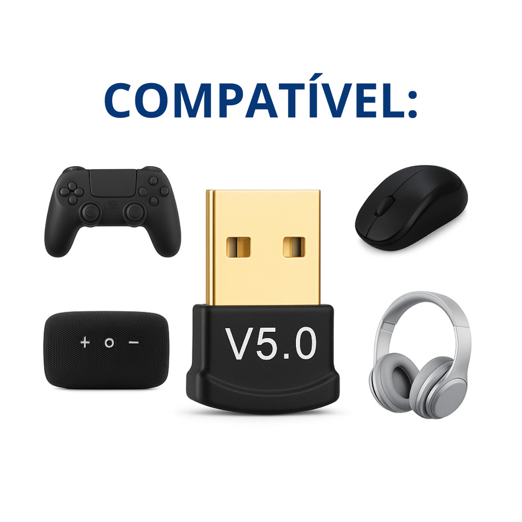 Adaptador Bluetooth USB 5.0 Receptor Transmissor Pc Notebook Alta Velocidade Conexão Estável