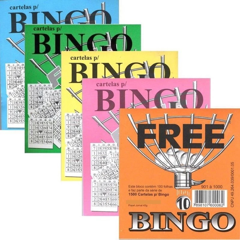 CARTELA PARA BINGO BLOCO C/100 FOLHAS 8cm x 10cm FREE