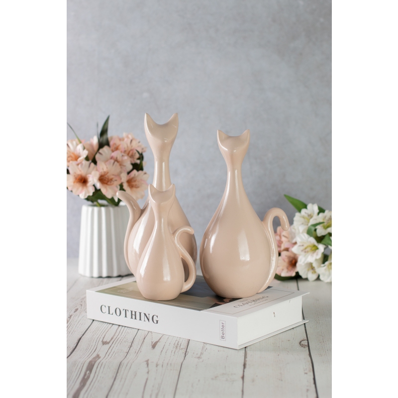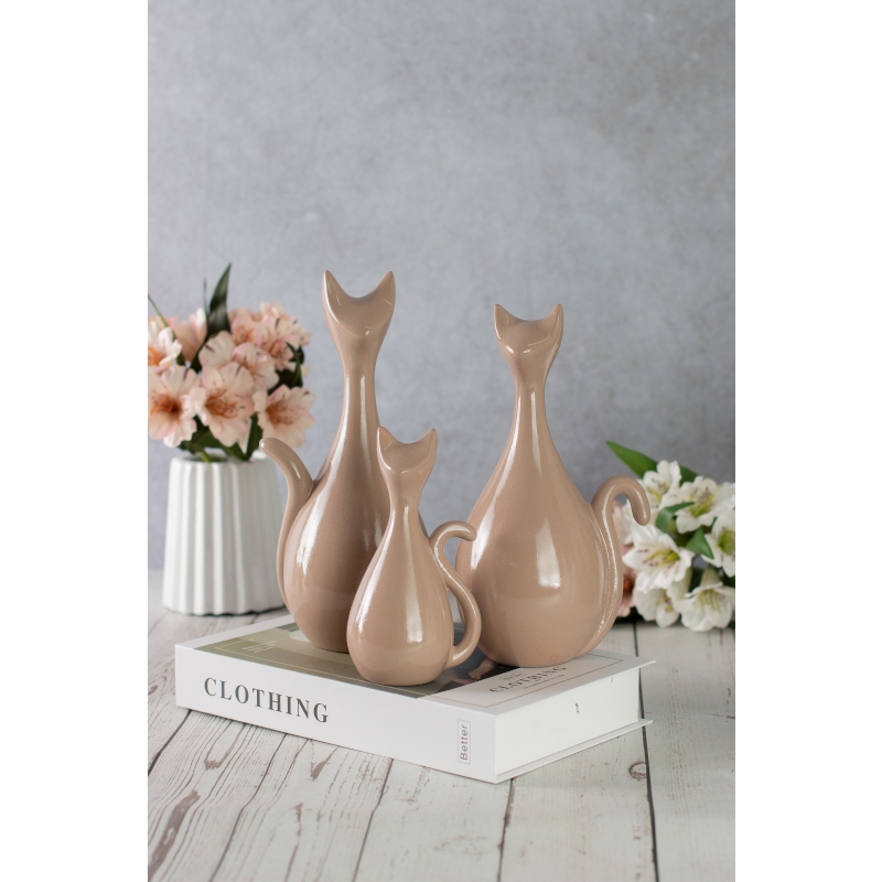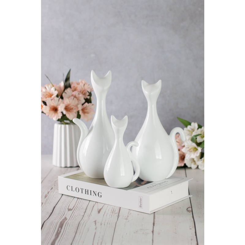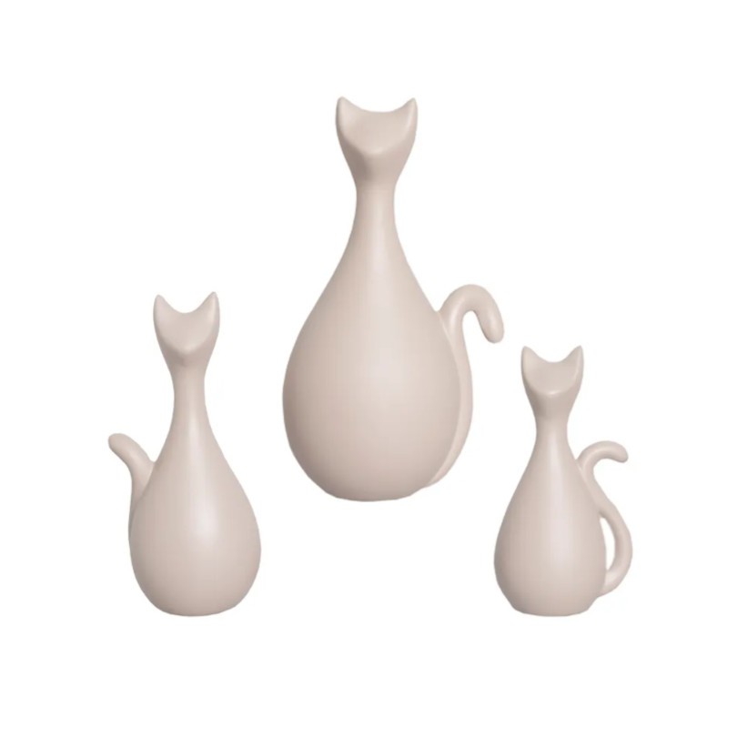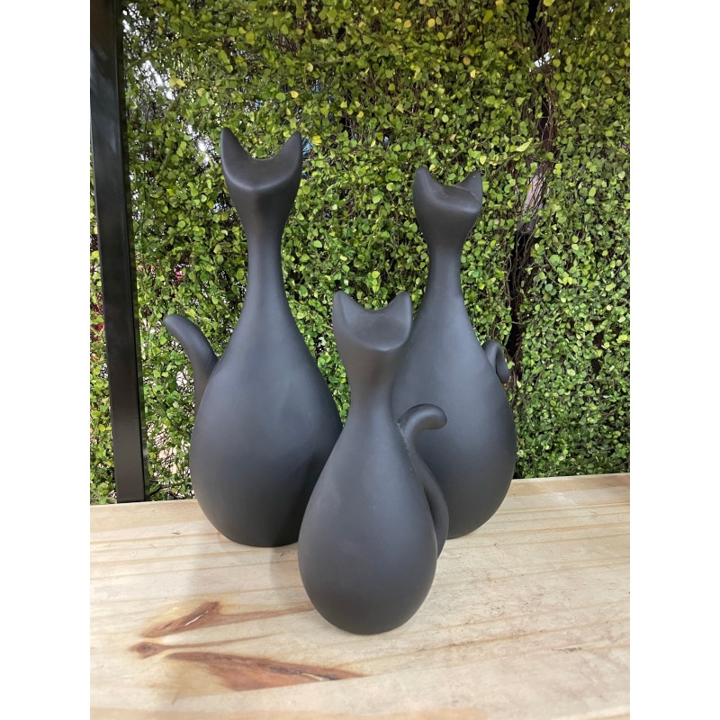 VASO DECORATIVO CERÂMICA ESTATUETA FAMILIA GATO C/ 3 DECORAÇÃO PARA CASA