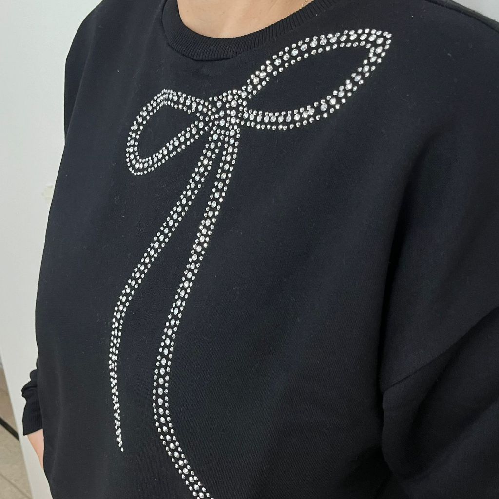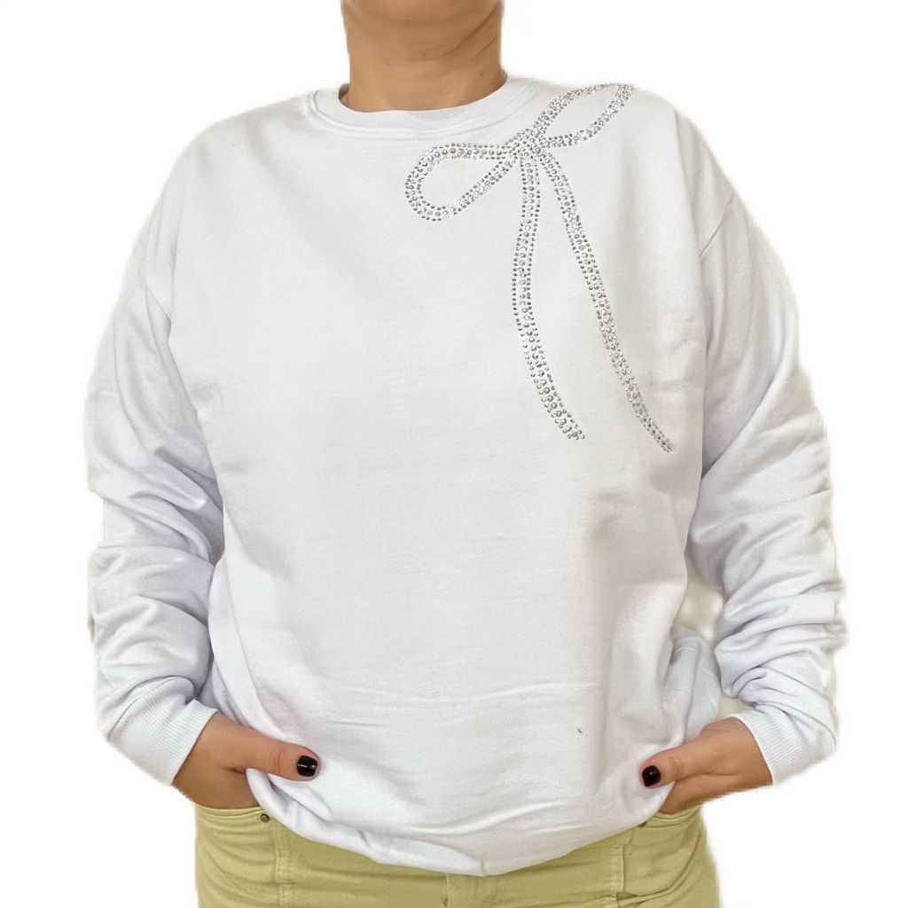 Blusão Feminino Moletom Brilho Fashion Flanelada Strass Laço