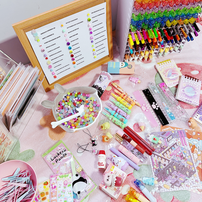 Kawaii Scoop - Caixa Surpresa Itens Papelaria Acessórios e Maquiagem - Presente