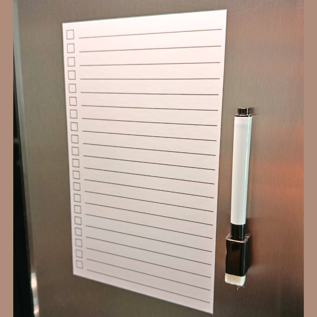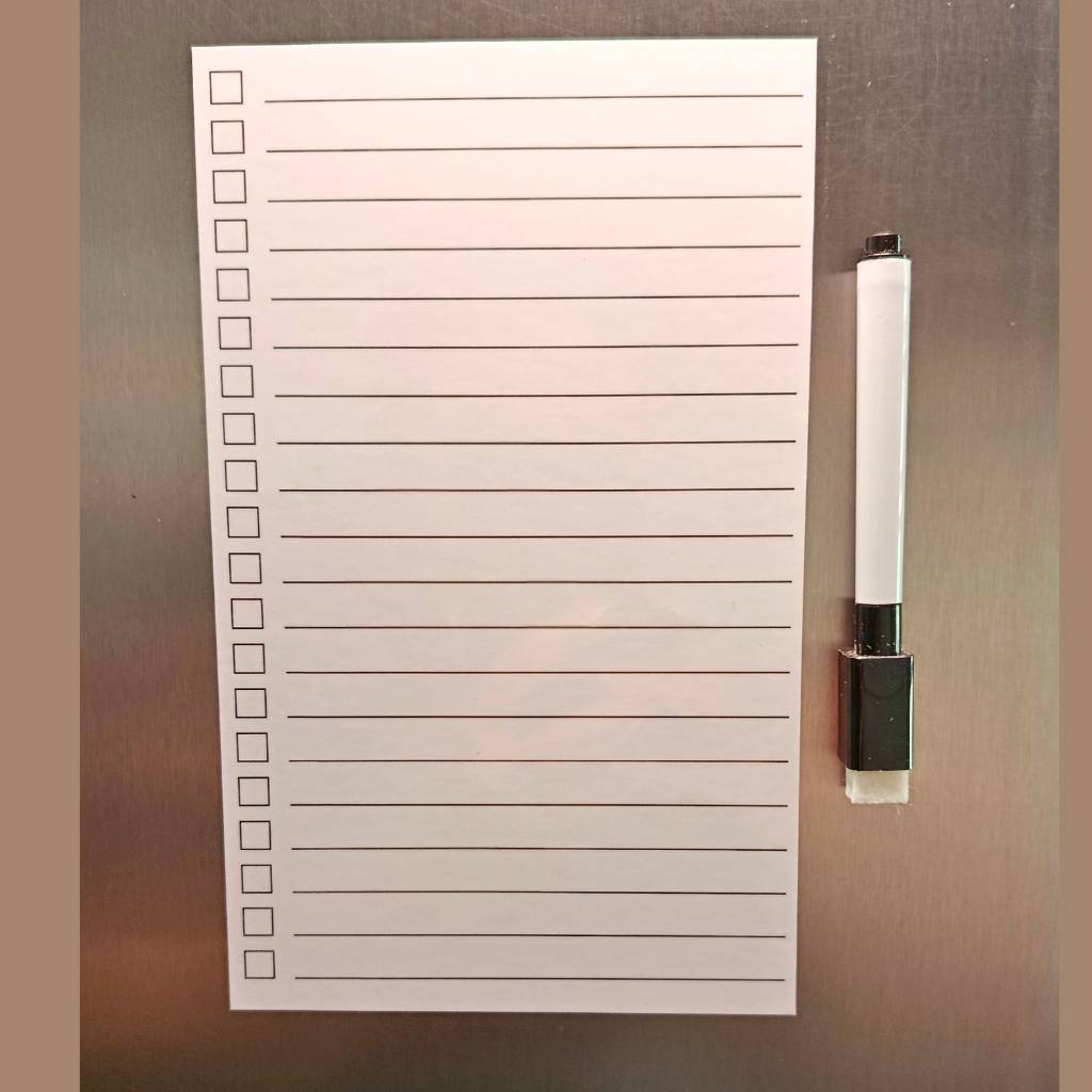 Lousa Magnética Clean 12x19,5cm com Caneta | Planner Linhas com Checklist Minimalista para Geladeira